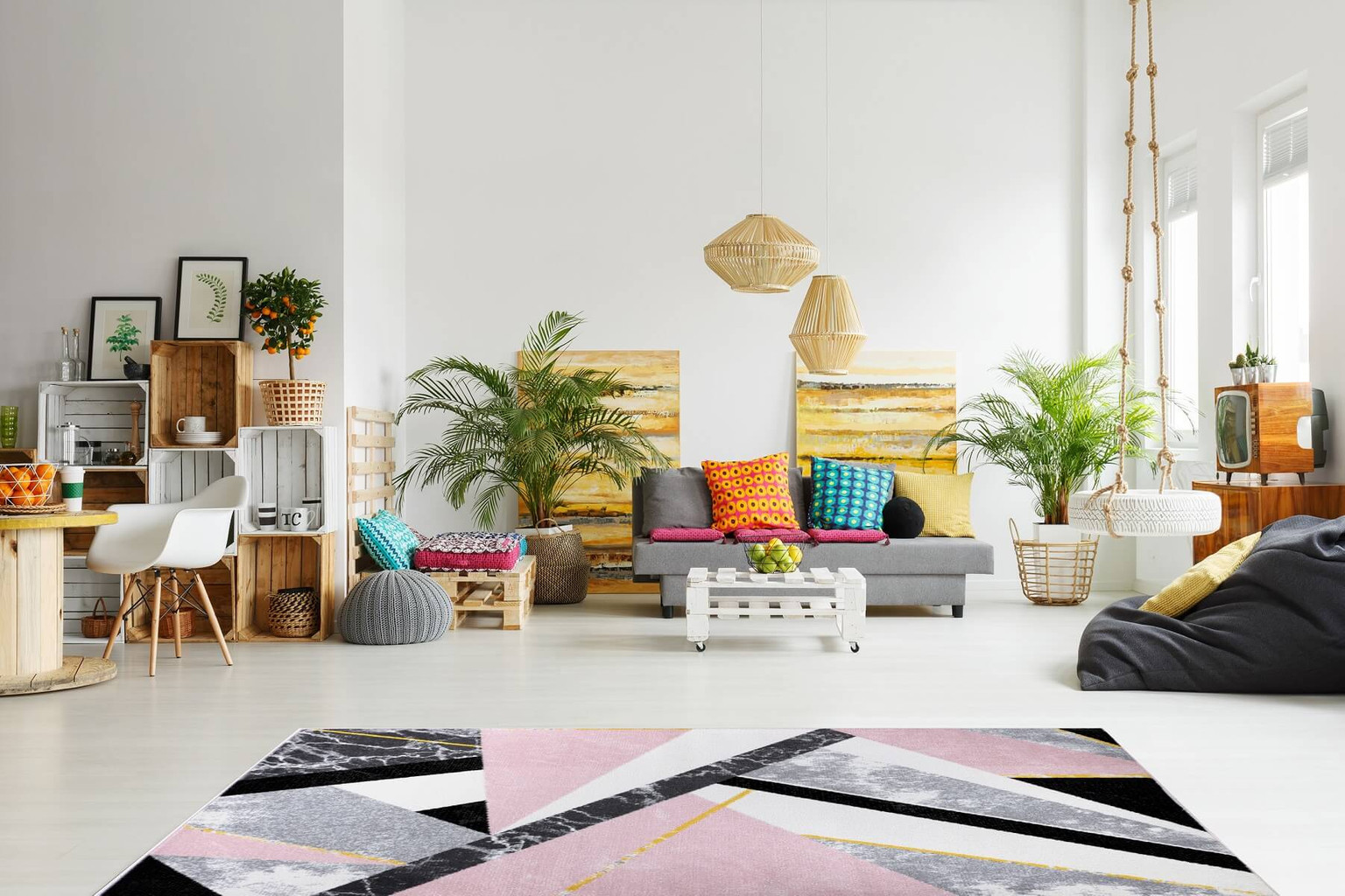 Moderná biela bodkovaná tapeta so sivými, čiernymi a žltými bublinami a bodkami Štýl