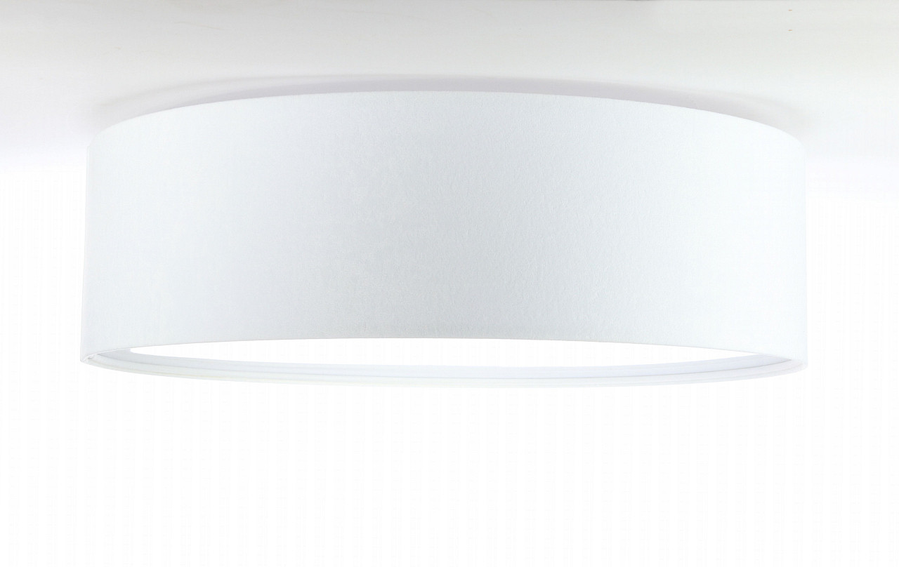 Biela stropná lampa s tienidlom v tvare valca z velúru, okrúhla stropnica