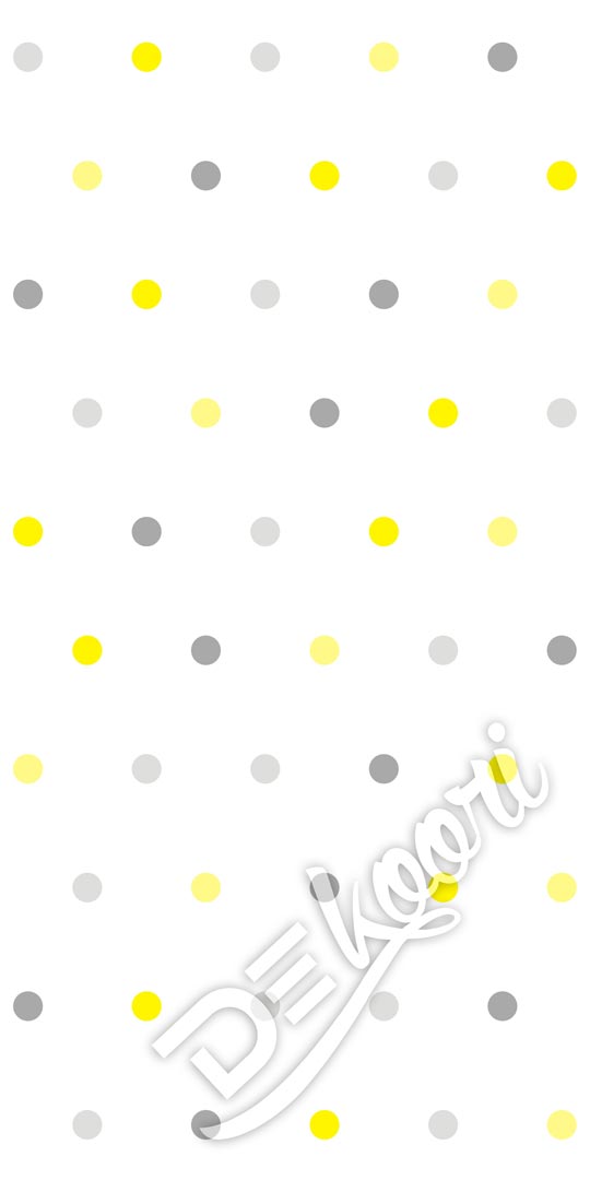 Biela tapeta so sivými a žltými bodkami, BODKY 5 cm