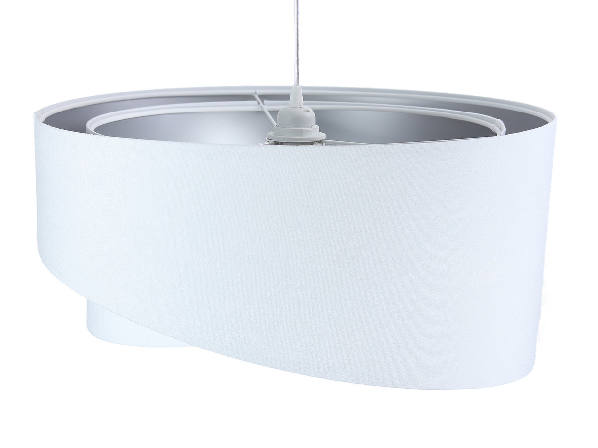 Biela velúrová závesná lampa s asymetrickým abažúrom, tienidlom so strieborným vnútrajškom CECÍLIA