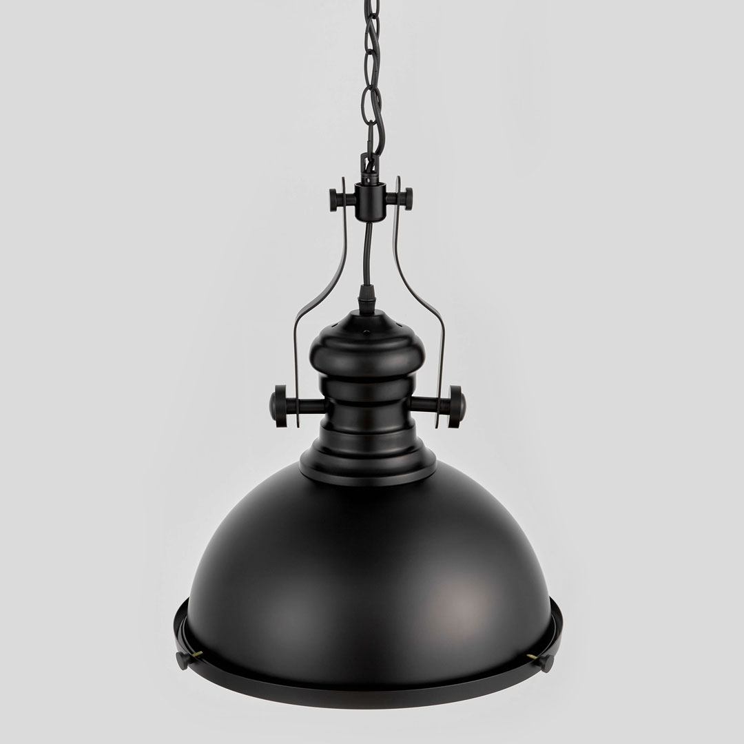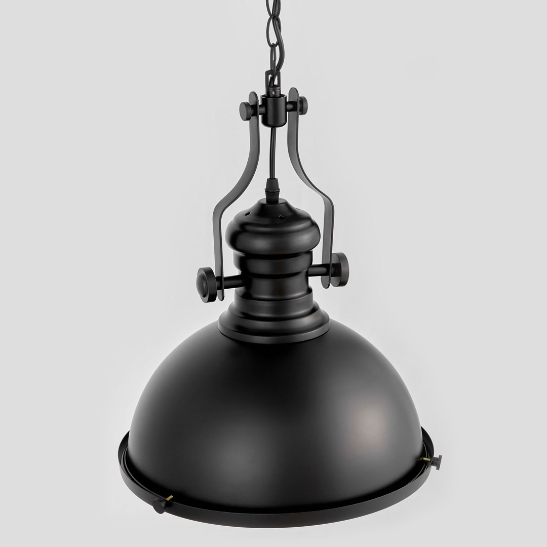 Závesná čierna industriálna lampa ELIGIO, loftové svietidlo vyrobené z kovu a zo skla. Vhodné pre interiéry v módnom priemyselnom retro štýle. Finálna úprava v elegantnej matnej čiernej farbe. Zavesená na reťazi.