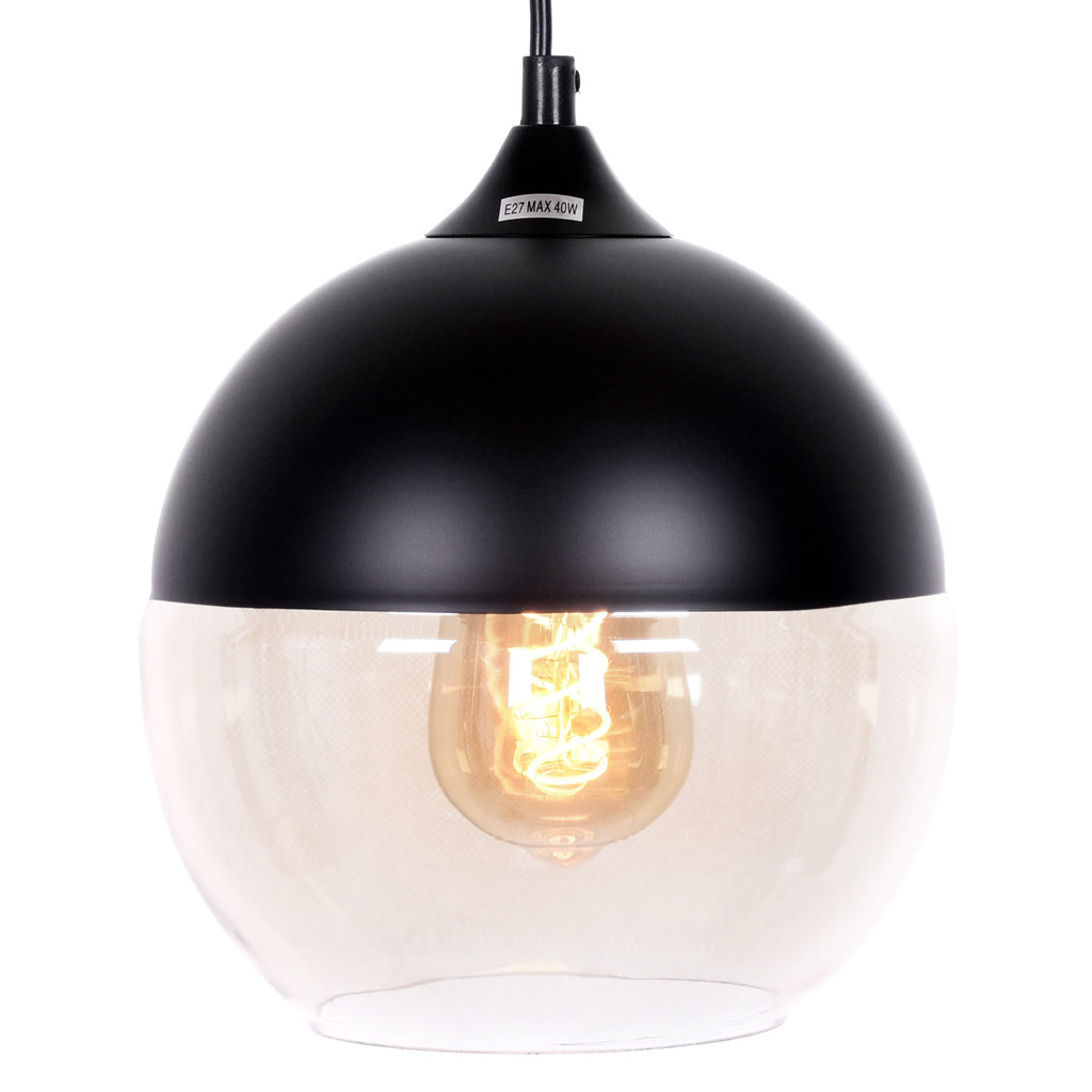 Elegantné loftové závesné svietidlo ALBION v čiernej farbe. Kombinácia kovu so sklom najvyššej kvality. Lampa bude krásne vyzerať v interiéroch loftového alebo škandinávskeho štýlu, v obývacej izbe, jedálni alebo v kuchyni.