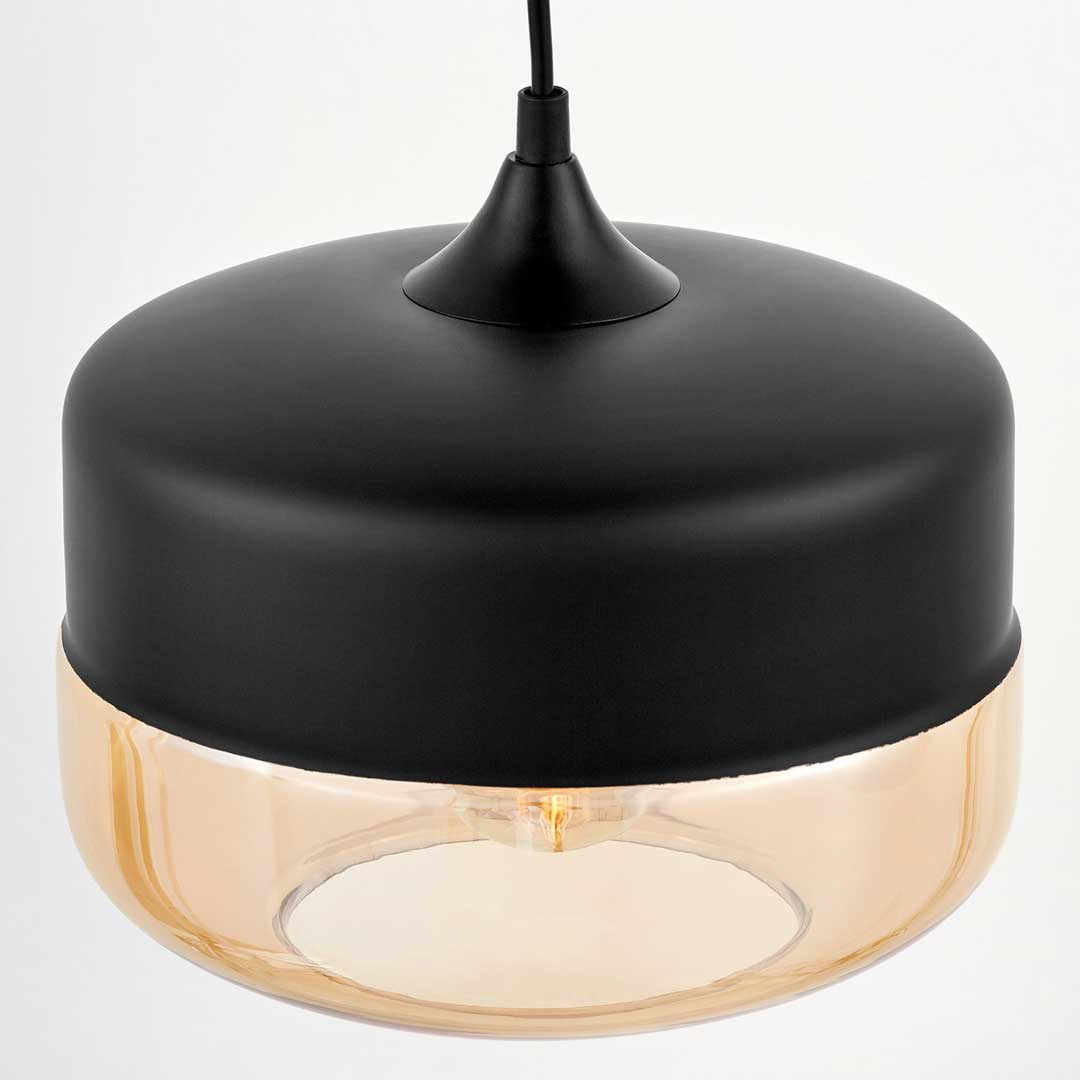 Elegantné závesné svietidlo BARLET, lampa vyrobená z čierneho kovu a priehľadného skla. Je namontované na čiernom nastaviteľnom kábli. Ideálne sa uplatní v kuchyni, jedálni a v obývacej izbe.