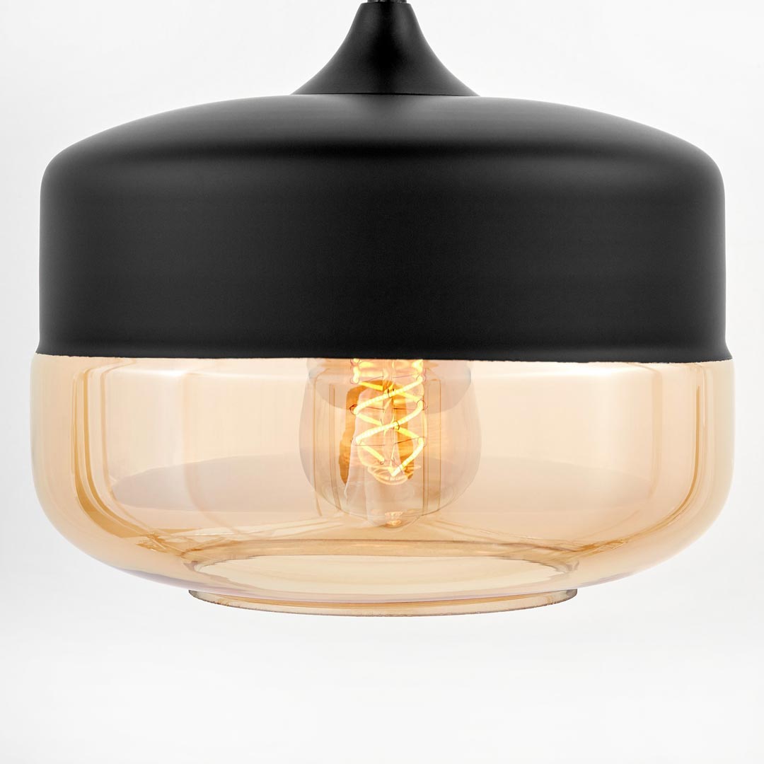 Čierna závesná lampa BARLET v industriálnom štýle, kovové tienidlo so sklom v tvare valca