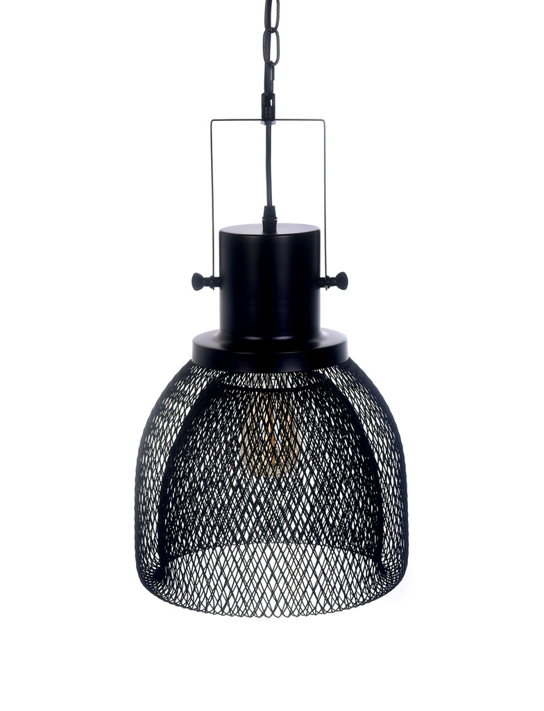 Čierna závesná lampa na reťazi FRATTON, dizajnová kovová sieťovina
