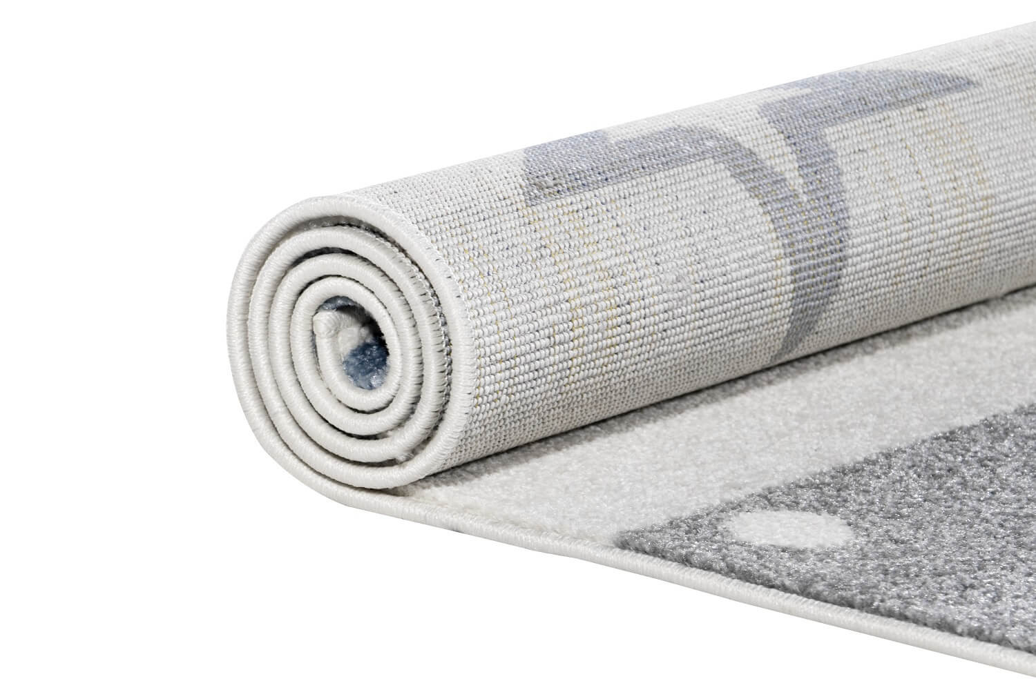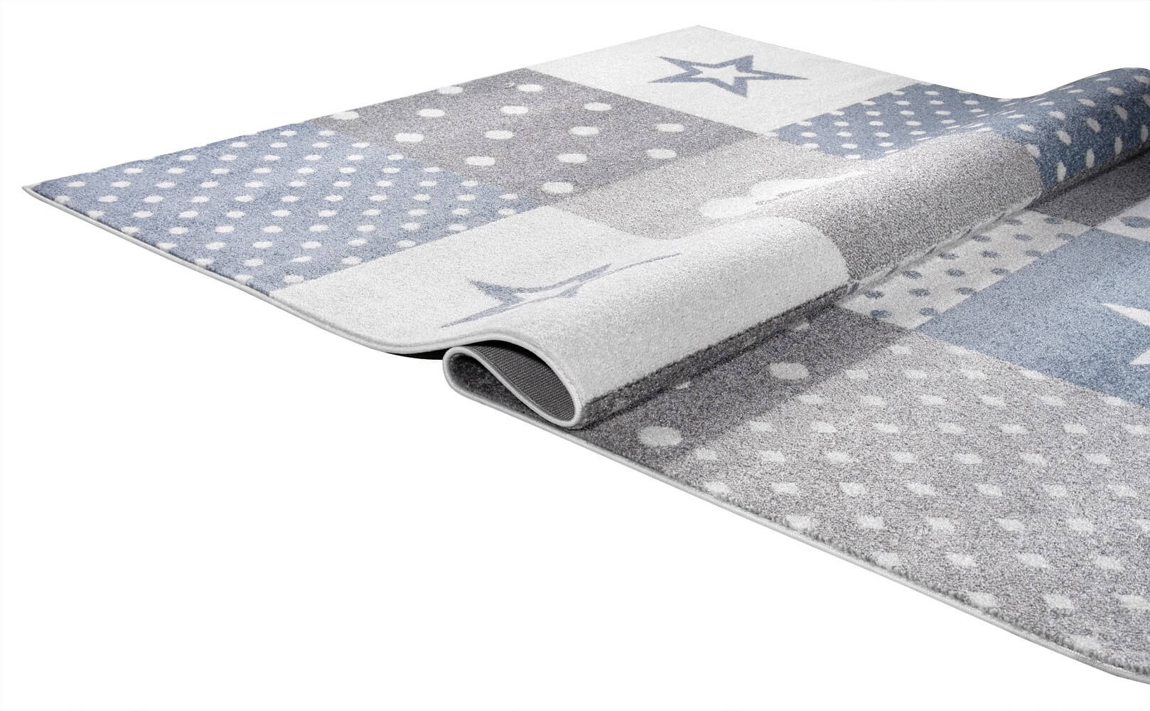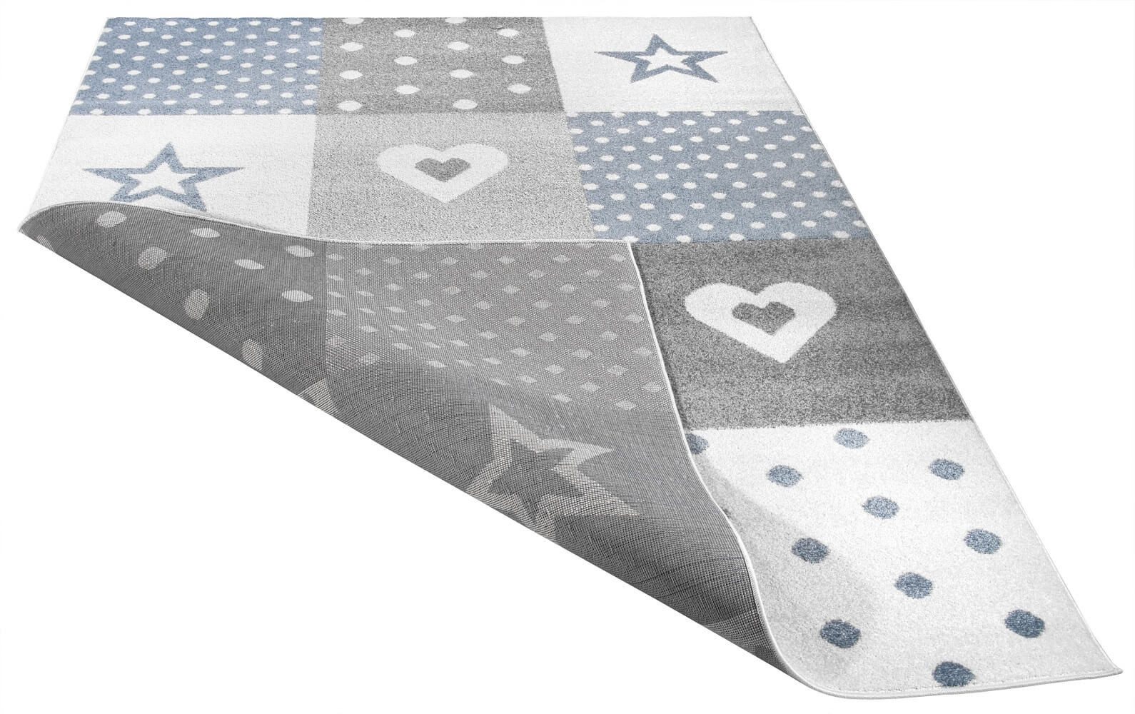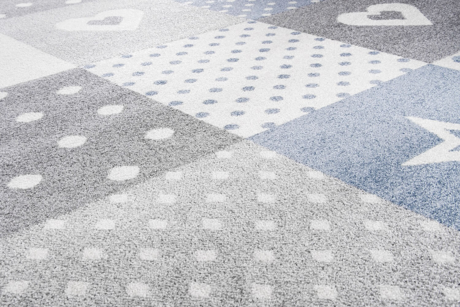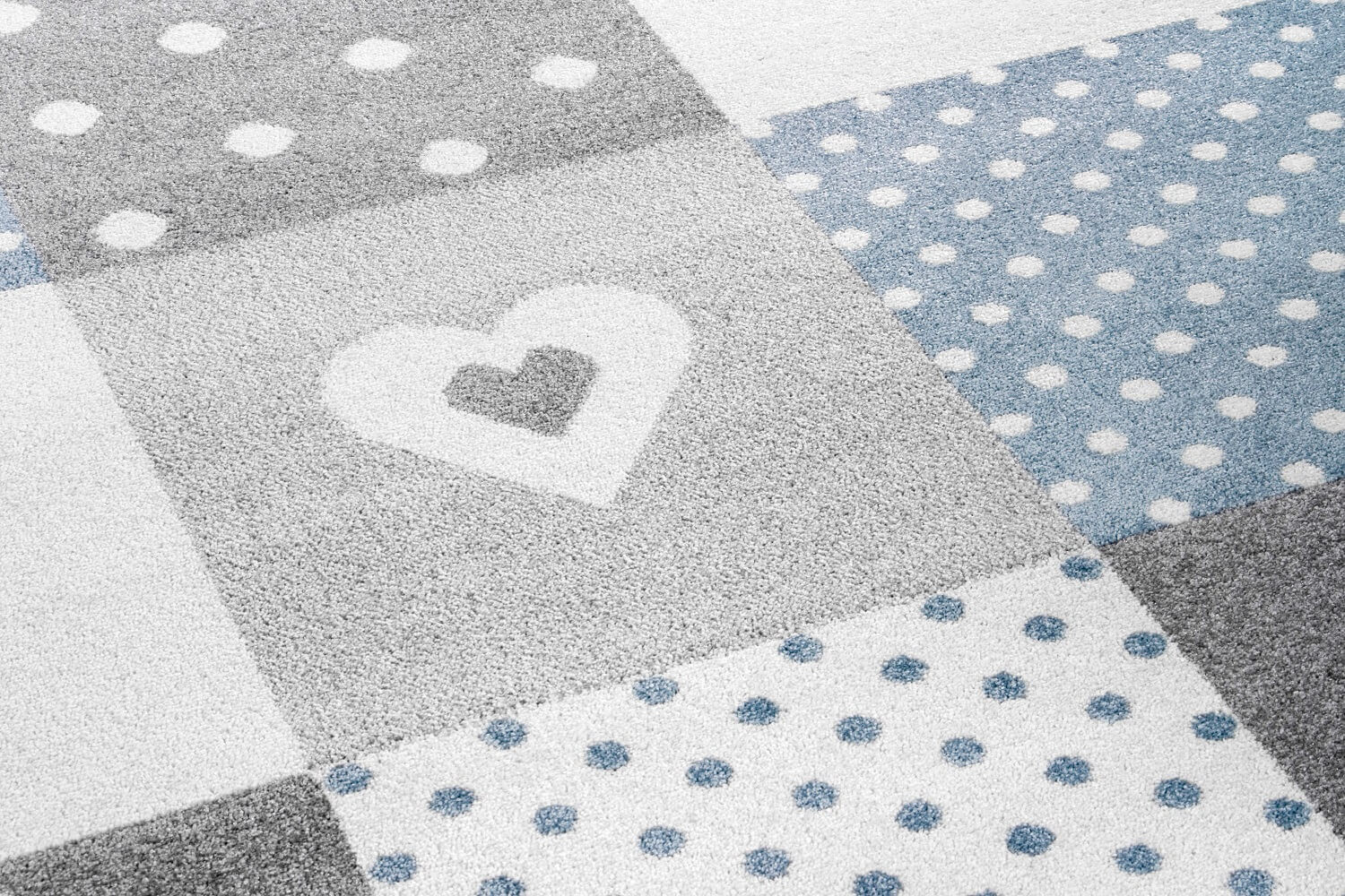 Dekoratívny modro-šedý detský koberec Easy Shapes so srdiečkami, hviezdami a bodkami