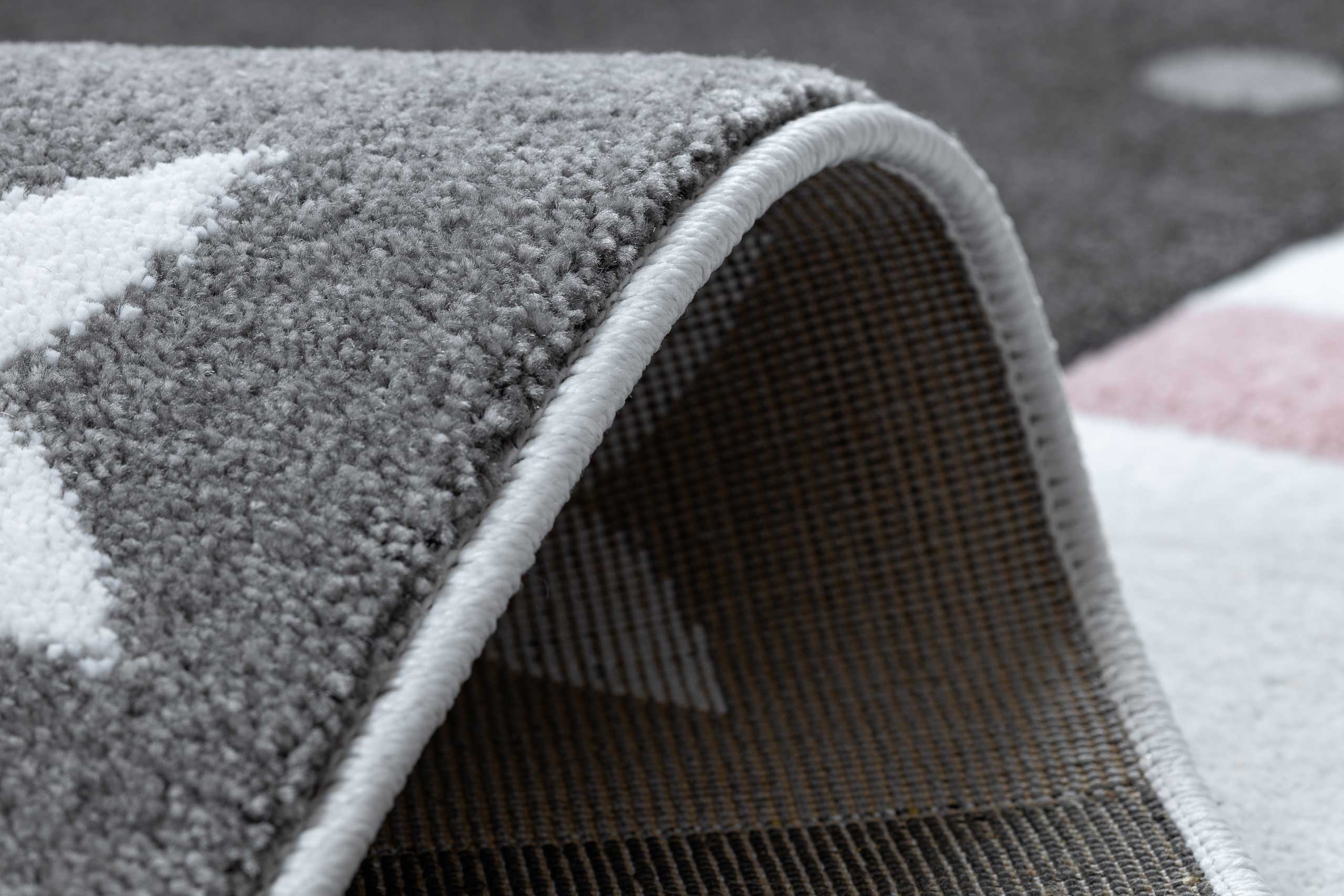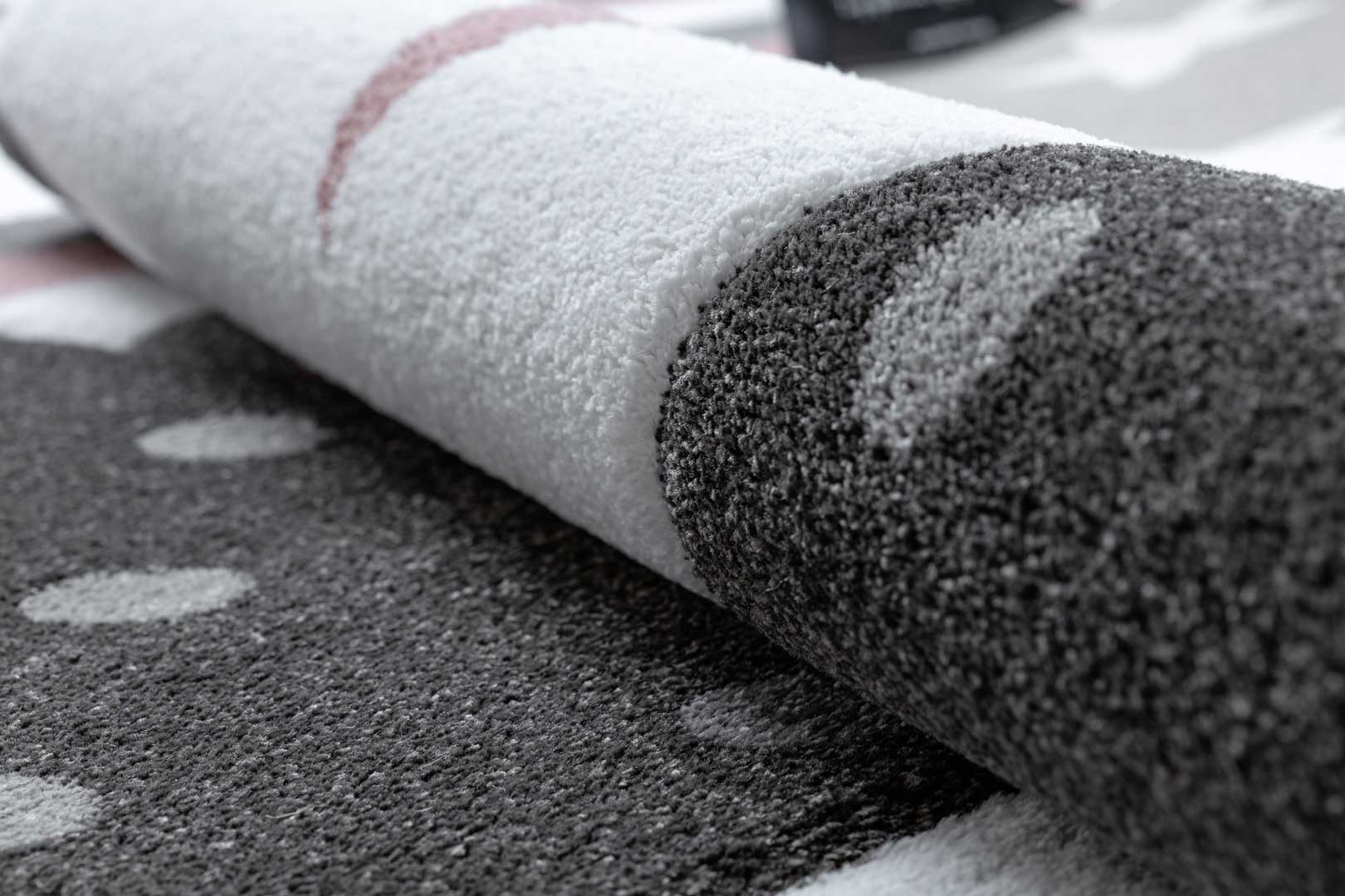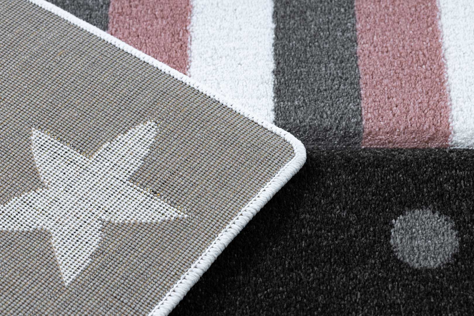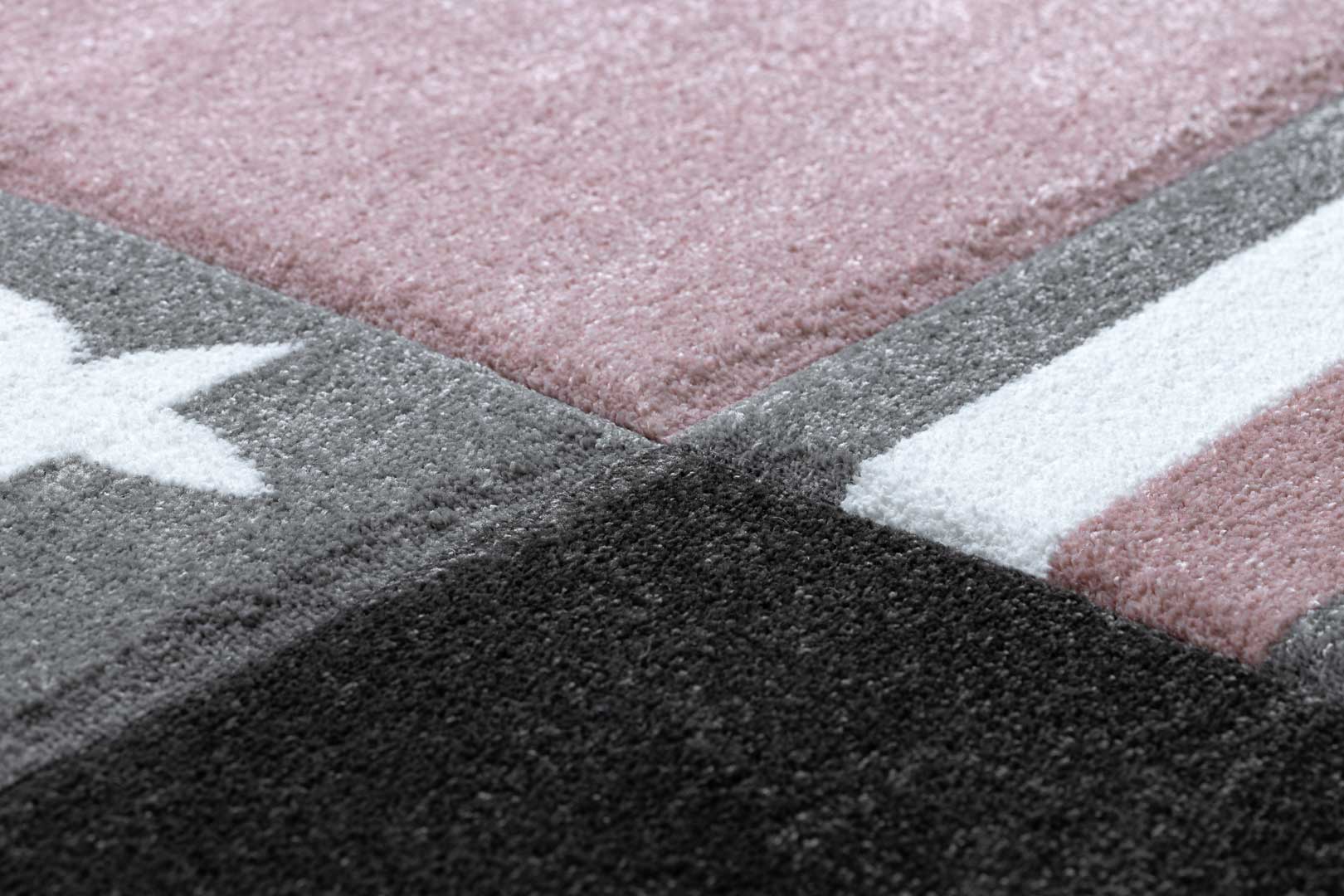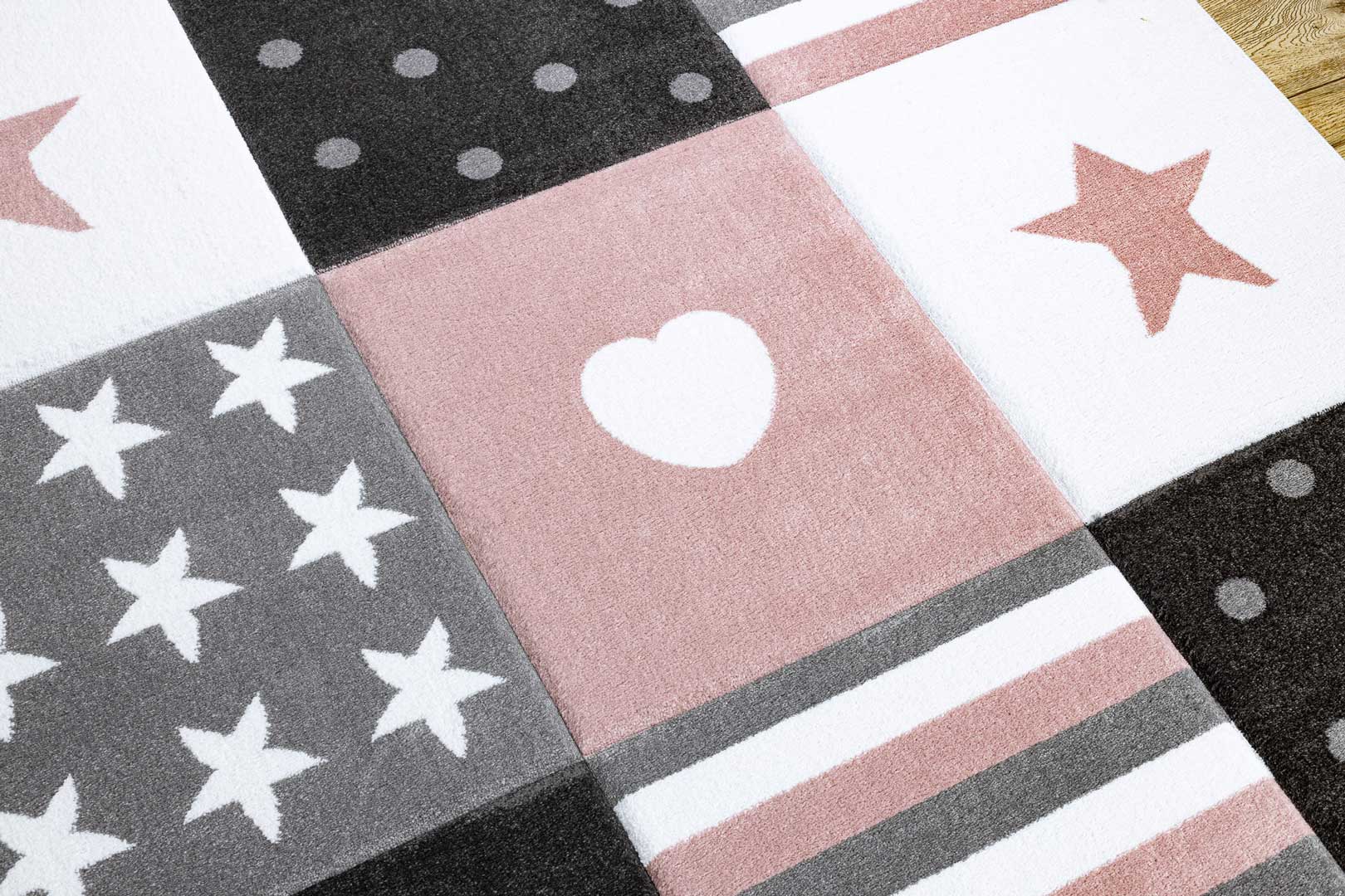 Patchworkový koberec do detskej izby pre dievča PETIT TEENY so srdiečkami, hviezdičkami a bodkami, ružový sivý a biely