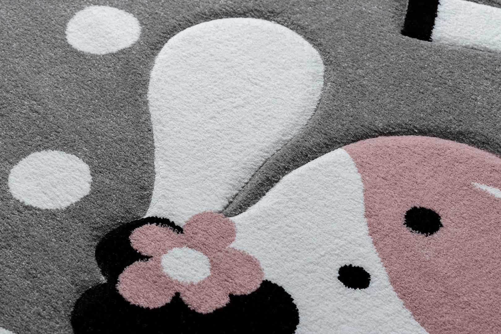 Tento útulný koberec s obrázkom rozkošnej ovečky vnesie do izby vášho dieťatka teplo a predstavivosť na dobro! Vďaka pastelovým teplým farbám (sivá/ružová/biela) si ho obľúbia rovnako dievčatá ako chlapci. Vďaka použitým materiálom je koberec mäkký, takže je ideálny pre batoľatá na začiatok plazenia, pre staršie deti na hranie a úplne bezpečný pre deti s alergiami aj bez nich.