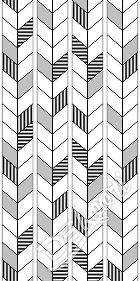 Dizajnová čierno-biela tapeta so vzorom RYBIA KOSŤ, HERRINGBONE, kontúry, obrysy v štýle BOHO