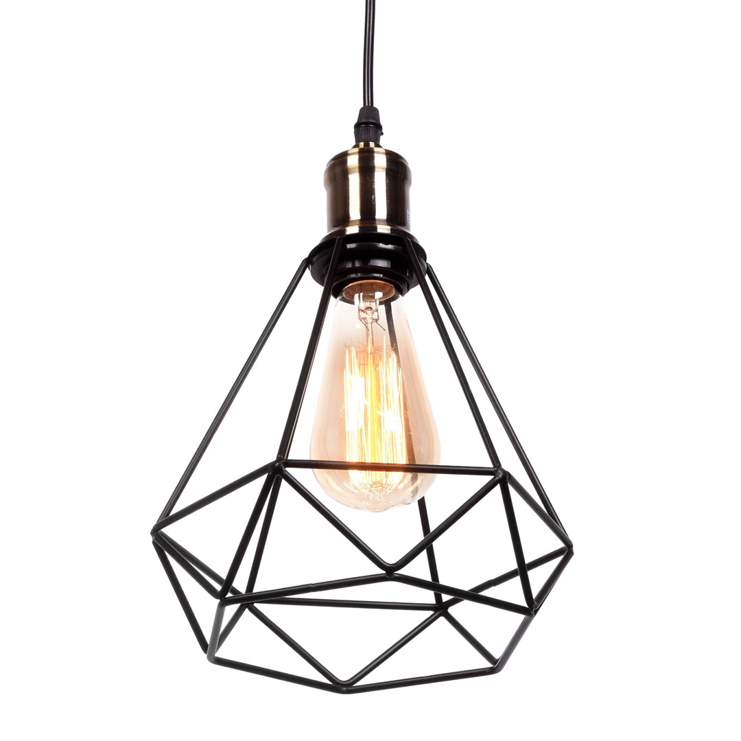 Dizajnérka, závesná drôtená lampa v tvare diamantu, zodpovedajúca priemyselnému štýlu, tiež loftovému a škandinávskemu štýlu. Kovové tienidlo je z čierneho drôtu.