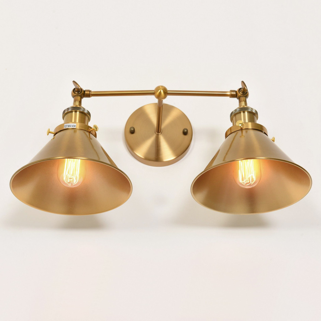 Dizajnové dvojité nástenné svietidlo vo farbe zlata GUBI DUO, kužeľovité tienidlá, loftové