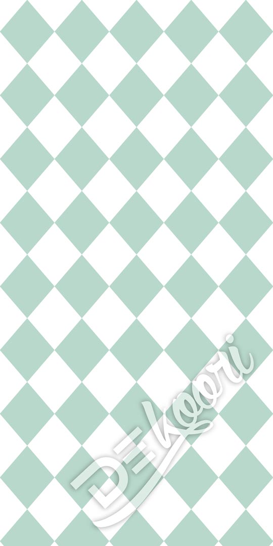 Geometrická tapeta na stenu s bielo-mätovými kosoštvorcami. Výrazný objektový vzor vo veľmi módnej a obľúbenej mätovej farbe.