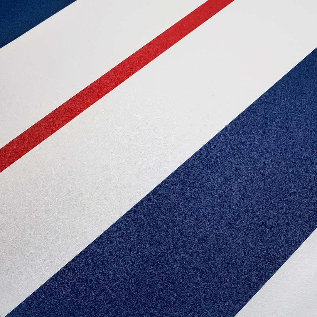 Granátovo-bielo-červená námorná tapeta na stenu s vertikálnymi pruhmi, dekoratívna, námornícka