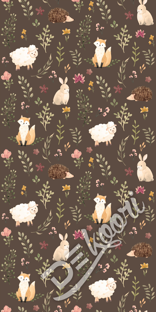 Fantastická tapeta na stenu s líškami, ježkami, ovcami a zajačikmi na tajomnej čistinke plnej rastlín!