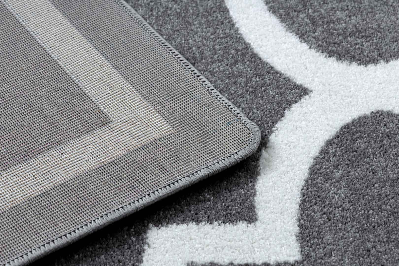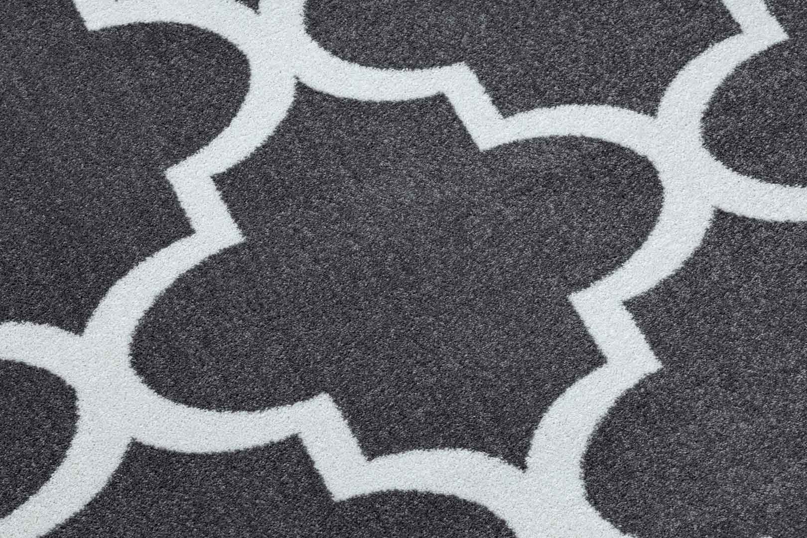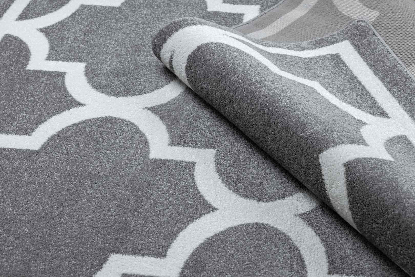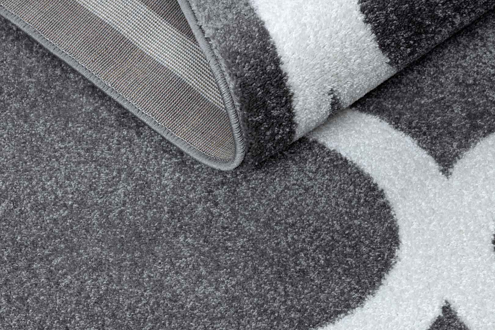 Sivý orientálny koberec do obývacej izby s bielou marockou ďatelinou