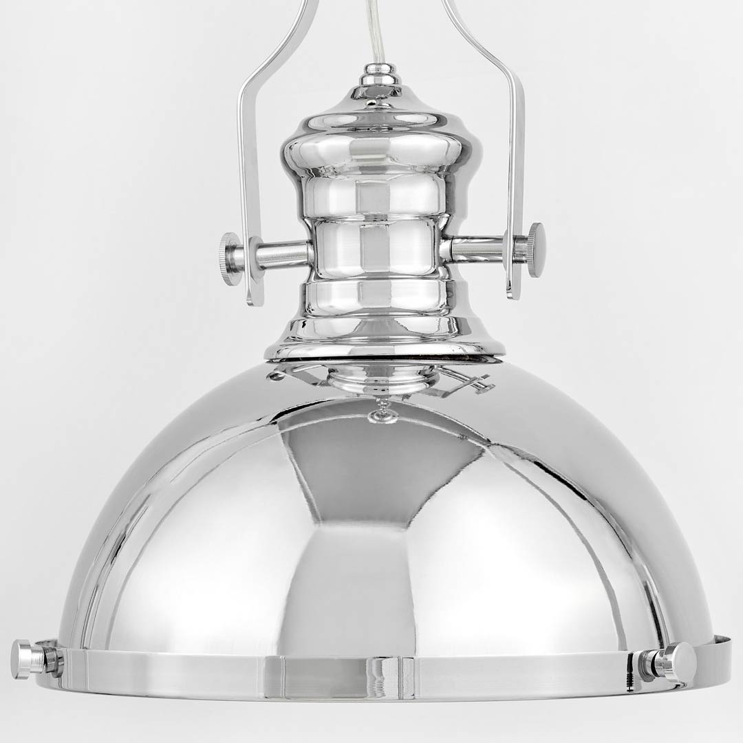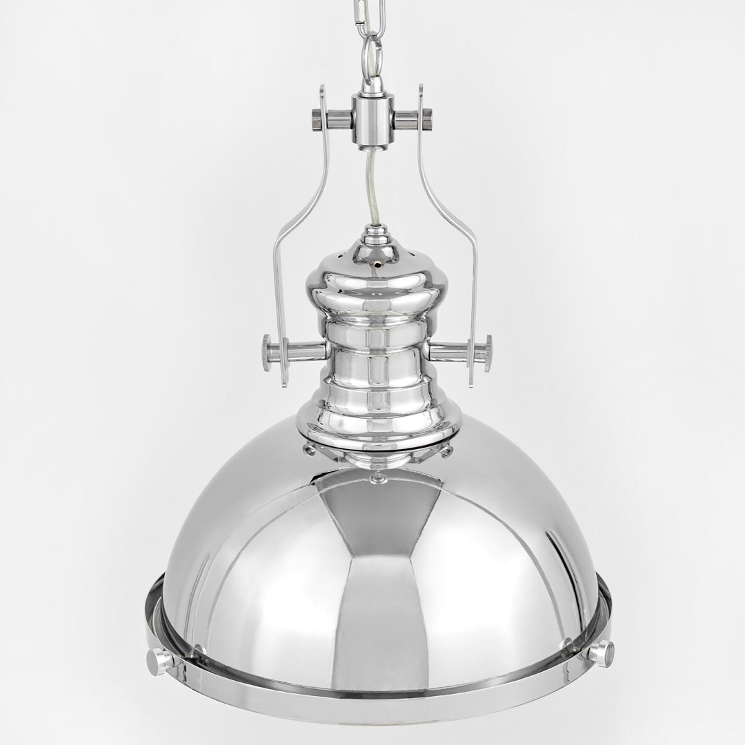 Priemyselné loftové závesné svietidlo v škandinávskom štýle s chrómovo striebornou povrchovou úpravou. Tvar lampy je kupola visiaca na reťazci.
