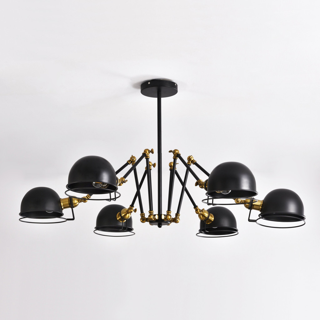 Mnohoramenné závesné svietidlo VALMONTI W6 v čiernej farbe. Je vyrobené z vysoko kvalitného kovu. Tienidlá v tvare kupoly sú vyrobené v industriálnom štýle. Dokonale zapadá do moderných interiérov a do obývacej izby, jedálne a tiež do úžitkových priestorov.