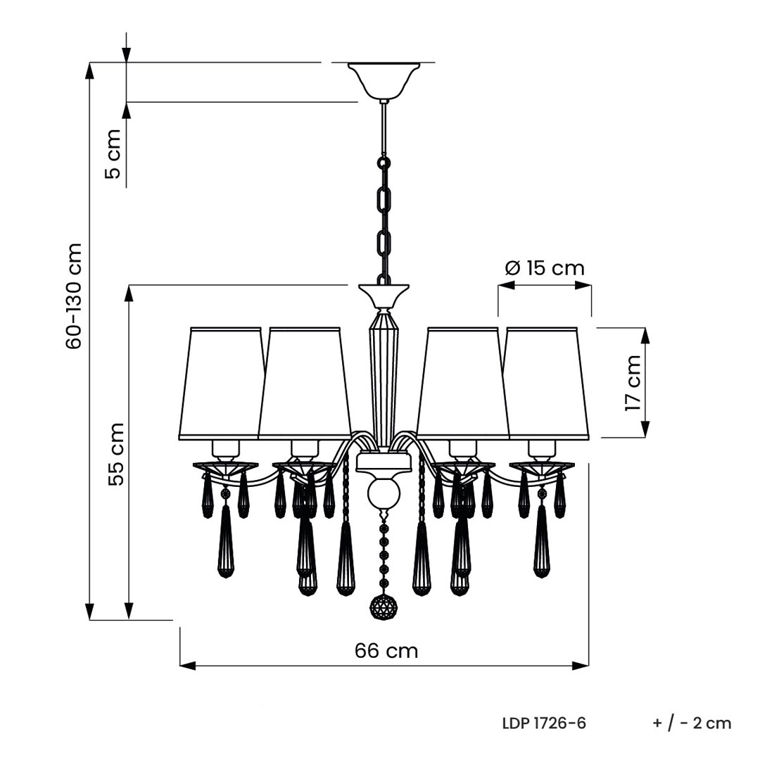 6 žiaroviek E14 / 220 - 240 V / max 40 W každá (spolu 240 W) (nie sú súčasťou balenia)
