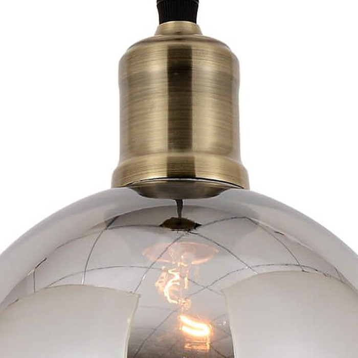 Závesné svietidlo ZAGALLO s guľovitým tienidlom z módneho, dymového skla. Rovnako sa hodí do štýlu retro, vintage, ale aj do loftového a industriálneho štýlu. Dymové tienidlo nadobúda sivú alebo striebornú farbu v závislosti od svetla žiarovky.