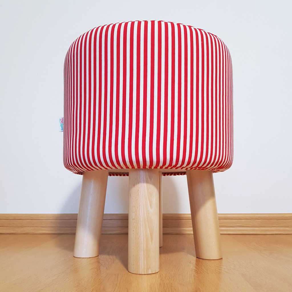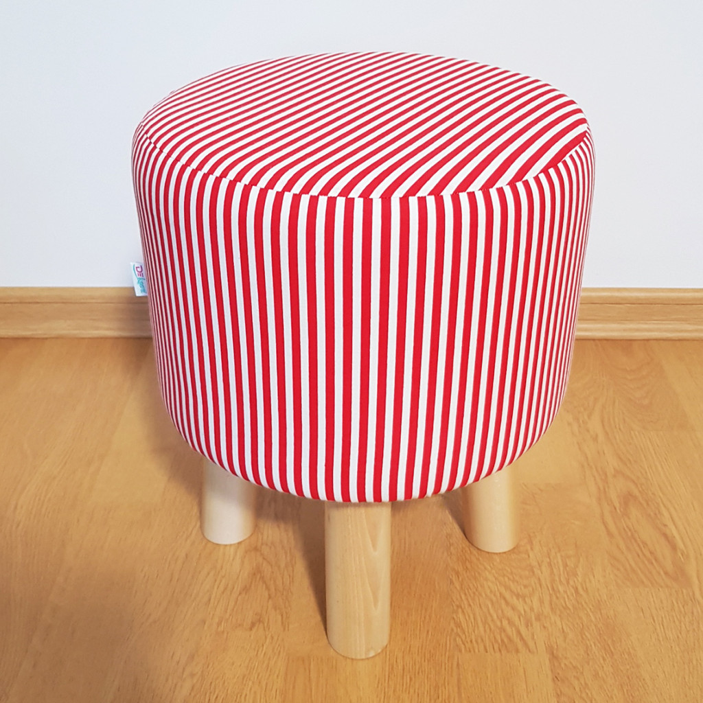Moderná taburetka, pruhovaný, červeno-biely puf v dizajne vintage