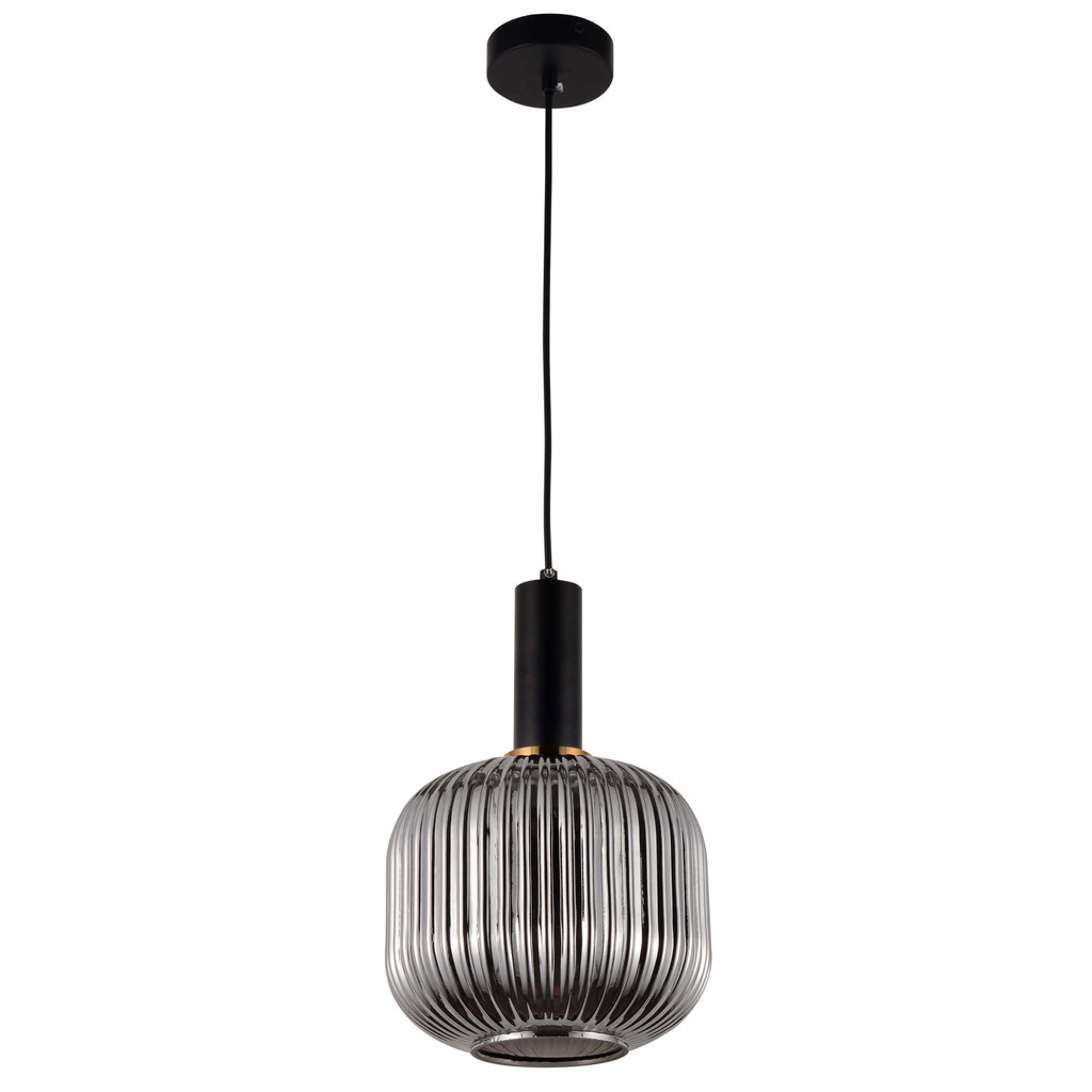 Čierna závesná lampa FLORI s dymovým skleneným tienidlom v modernom loftovom štýle