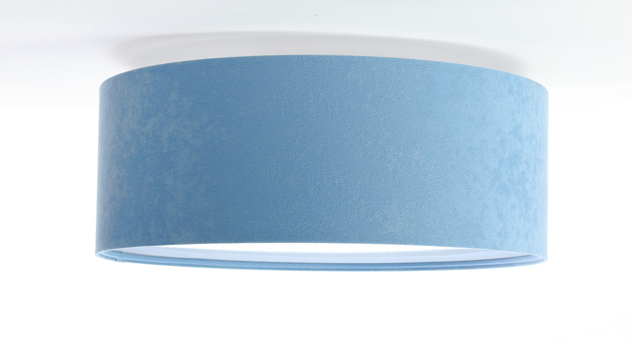 Modrá stropná lampa, valcová stropnica s okrúhlym abažúrom, tienidlom z velúru
