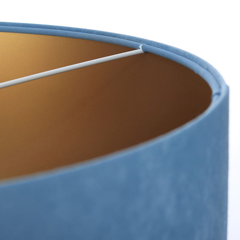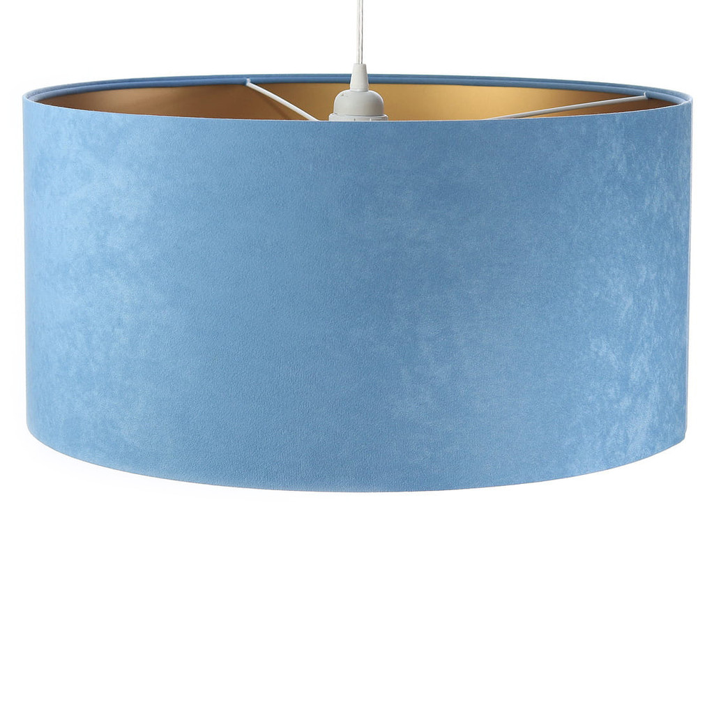 Modrá závesná lampa ANGARIKA s velúrovým tienidlom, abažúrom v tvare valca so zlatým vnútrajškom