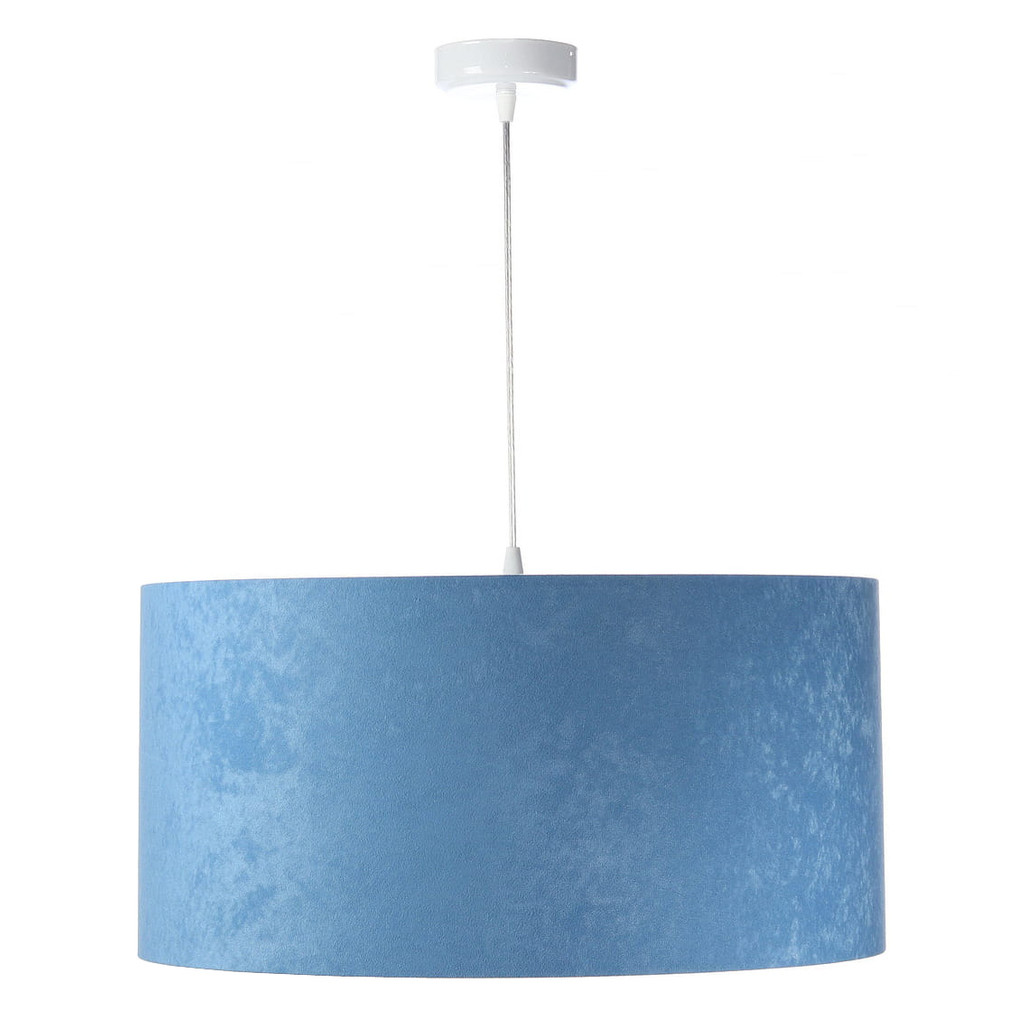 Modro-biela závesná lampa ANGARIKA s velúrovým tienidlom v tvare valca