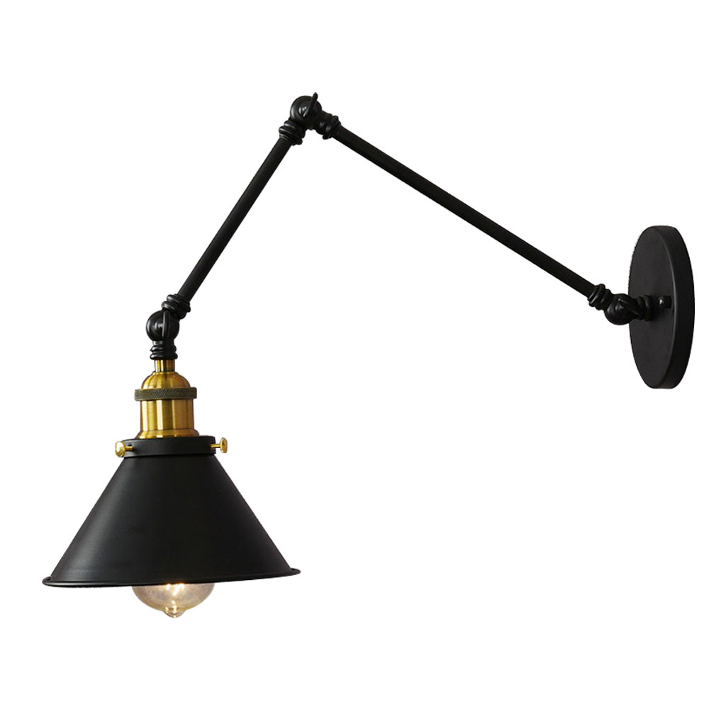 Nastaviteľné loftové nástenné svietidlo GUBI W2 s čiernym kovovým tienidlom. Vyrobené v industriálnom štýle, vďaka čomu je vhodné pre interiéry v štýle retro, vintage, ale aj pre moderné miestnosti. Polohovateľné rameno umožňuje ideálne nastaviť túto nástennú lampu na čítanie v spálni alebo v obývacej izbe.