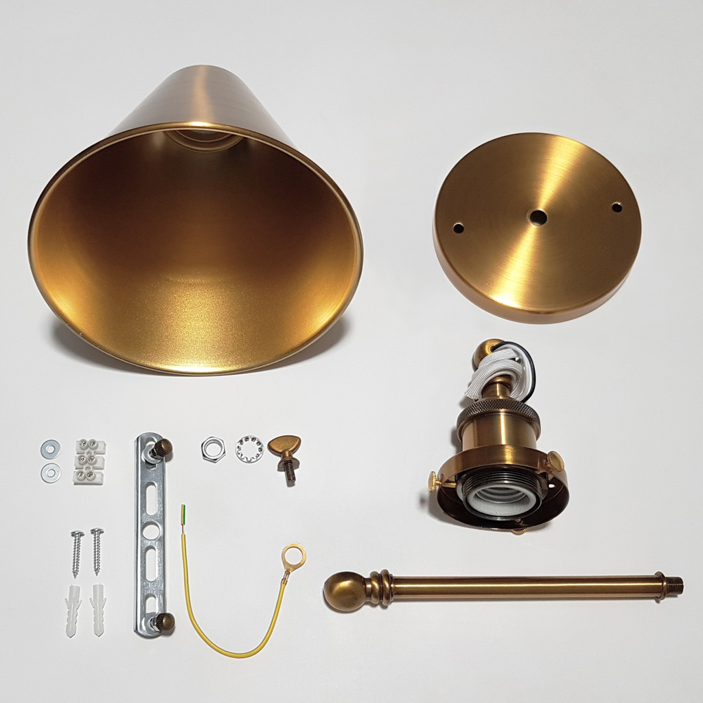 Priemyselné loftové svietidlo RUBI W1 ZLATÁ MOSADZ, tienidlo v tvare kužeľa, priemyselný dizajn