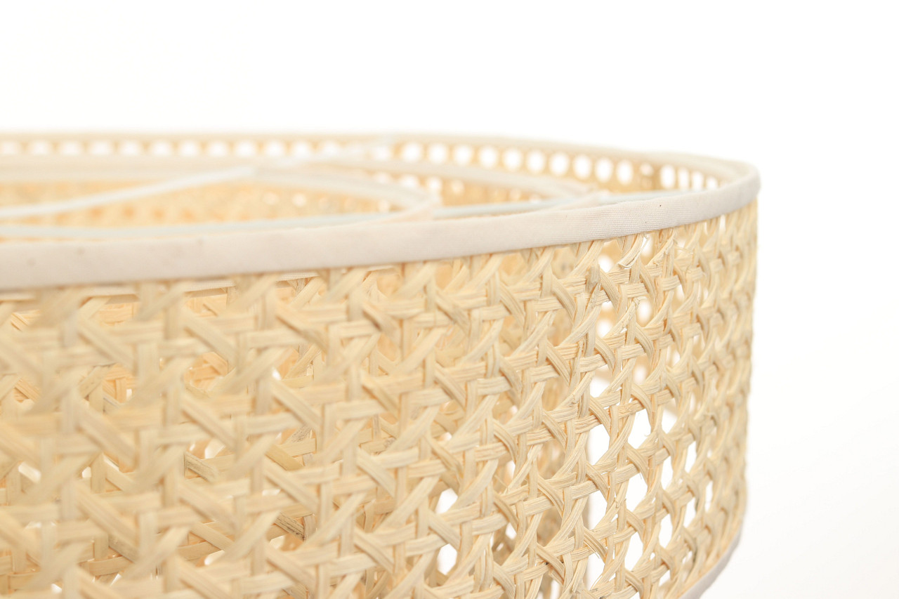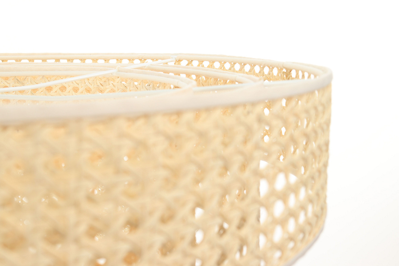 Prírodná EKO závesná lampa s valcovým tienidlami z ratanu a z krémovej plastovej fólie, boho ROTANG