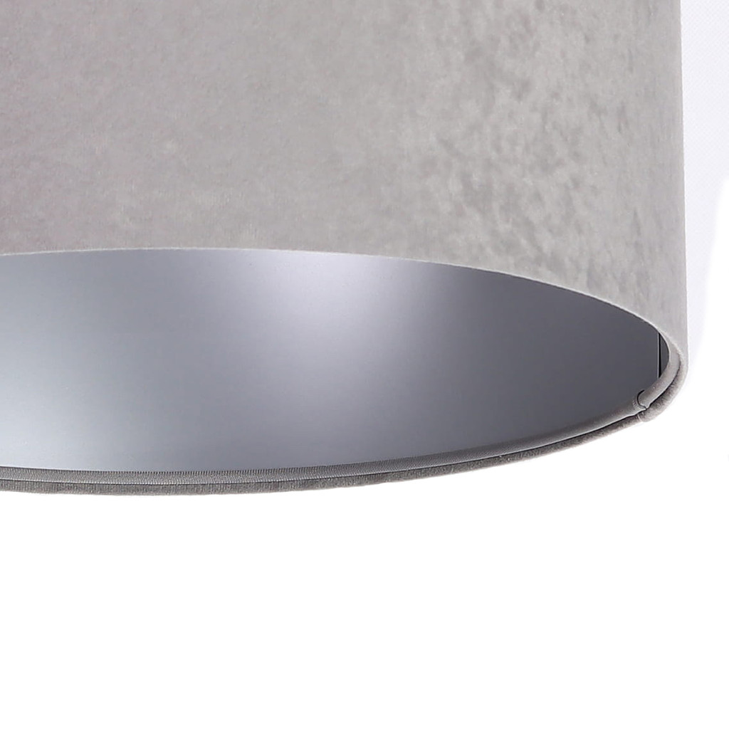 Šedo-strieborná závesná lampa KAMELIA s velúrovým abažúrom, tienidlom v tvare valca