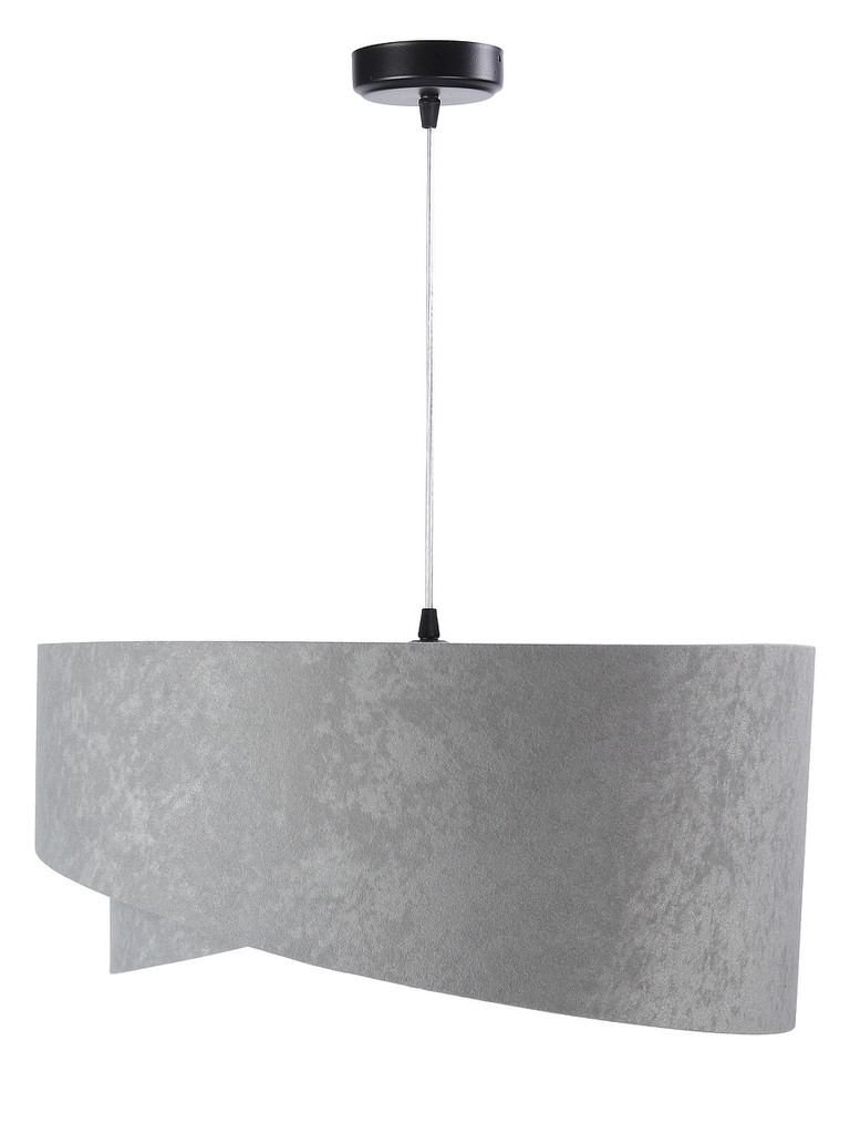 Sivo-biela závesná lampa s okrúhlym asymetrickým tienidlom z velúru TAMI