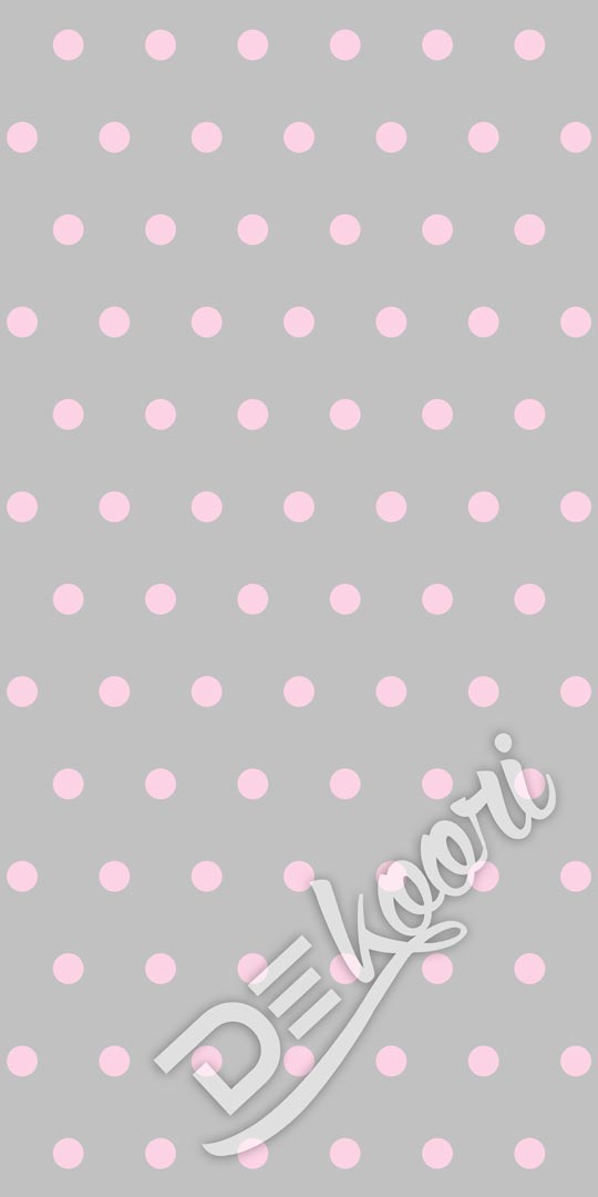 Jemná sivá tapeta na stenu s bodkami, guličkami, v ružovej farbe a o rozmere 5 cm. Príjemný dizajn evokujúci teplo domova.