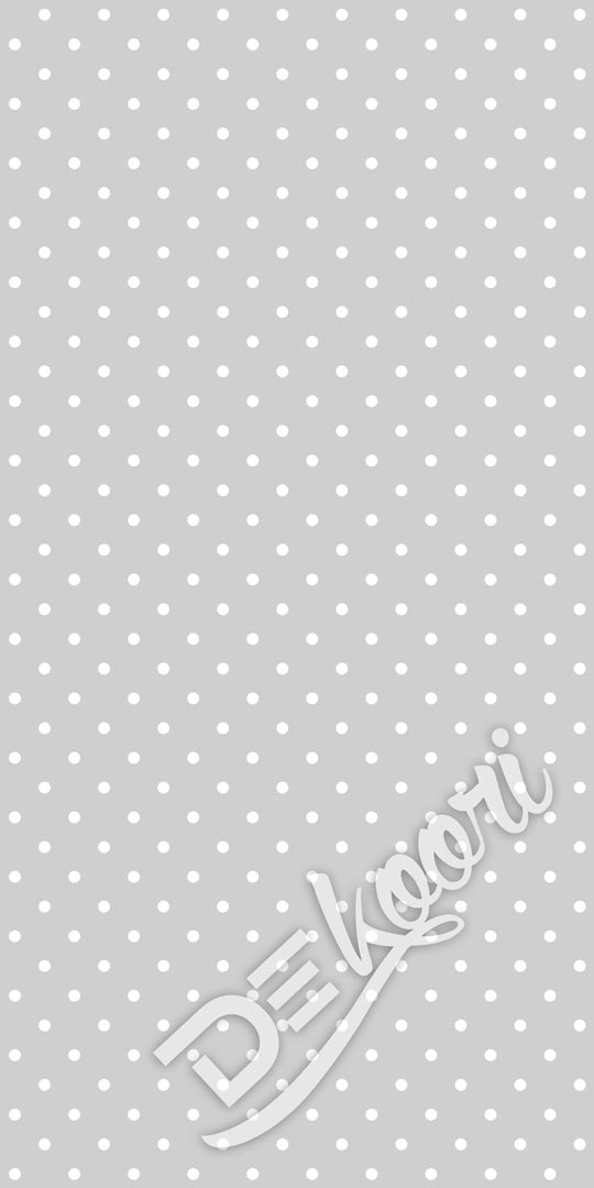 Dekoratívna šedá nástenná tapeta s malými bielymi bodkami v retro štýle polka dot retro vintage. Mäkký šedý, mierne strieborný odtieň dodáva tejto módnej dekoratívnej tapete klasickú eleganciu.