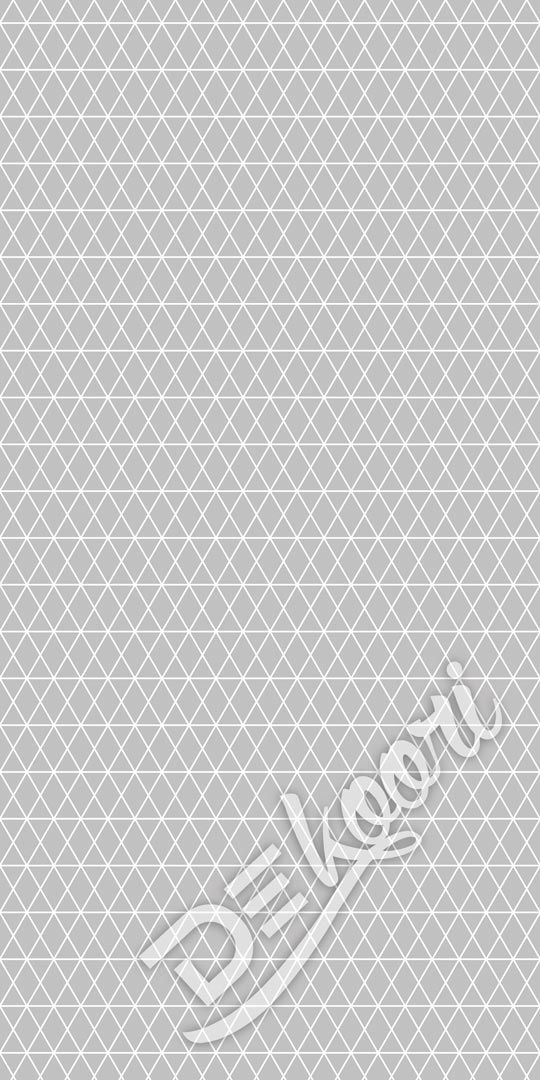 Sivá, pastelová geometrická tapeta s bielymi líniami vytvárajúcimi trojuholníky a kosoštvorce. Minimalistický geometrický vzor: tenké biele línie na sivom podklade. Ideálna na steny moderných interiérov.