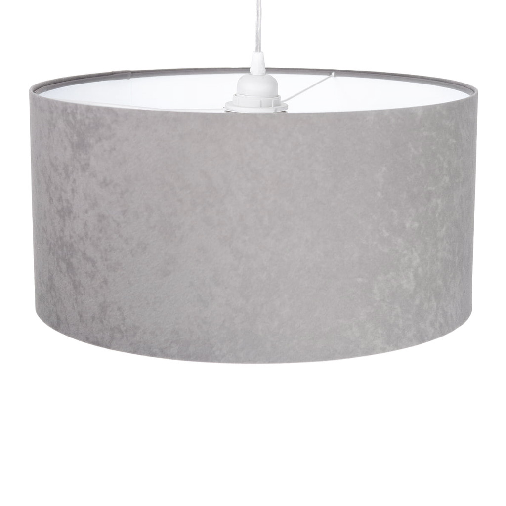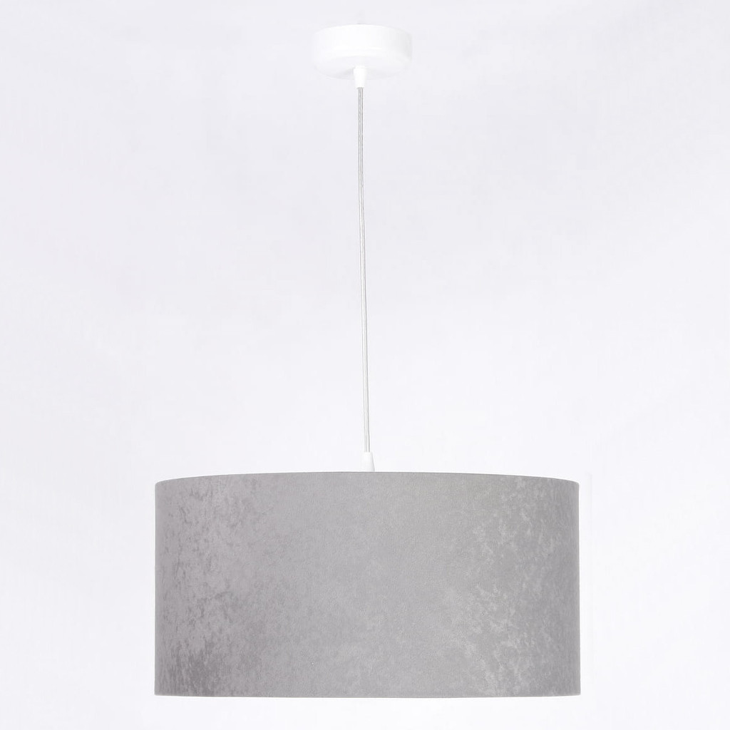 Sivo-biela závesná lampa KAMELIA v tvare valca s velúrovým tienidlom, abažúrom