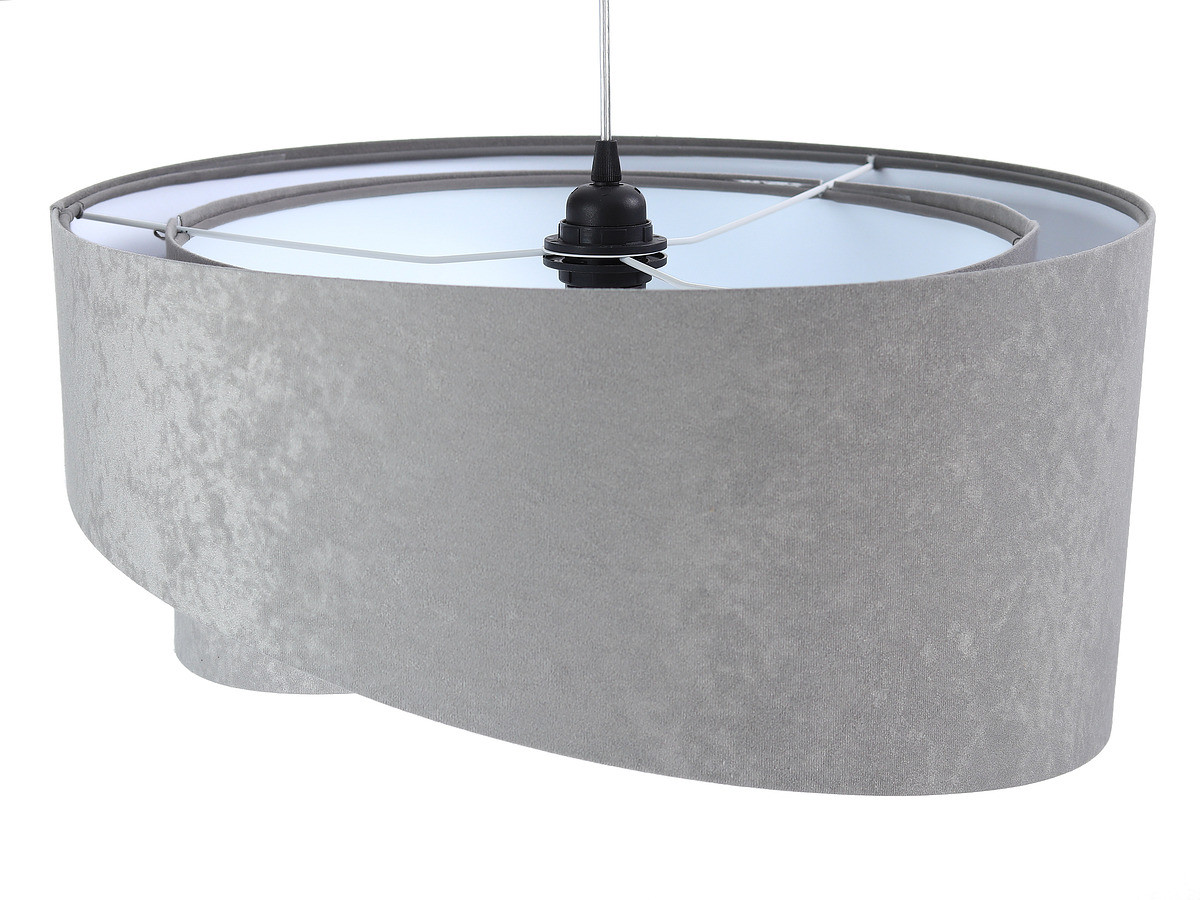 Sivo-biela závesná lampa s okrúhlym asymetrickým tienidlom z velúru TAMI