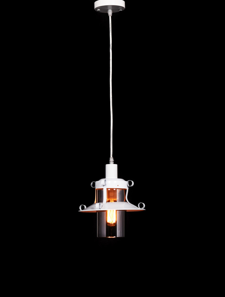 Sklenené závesné loftové svietidlo CAPRI W1, biele, kovové, nastaviteľné, v priemyselnom štýle