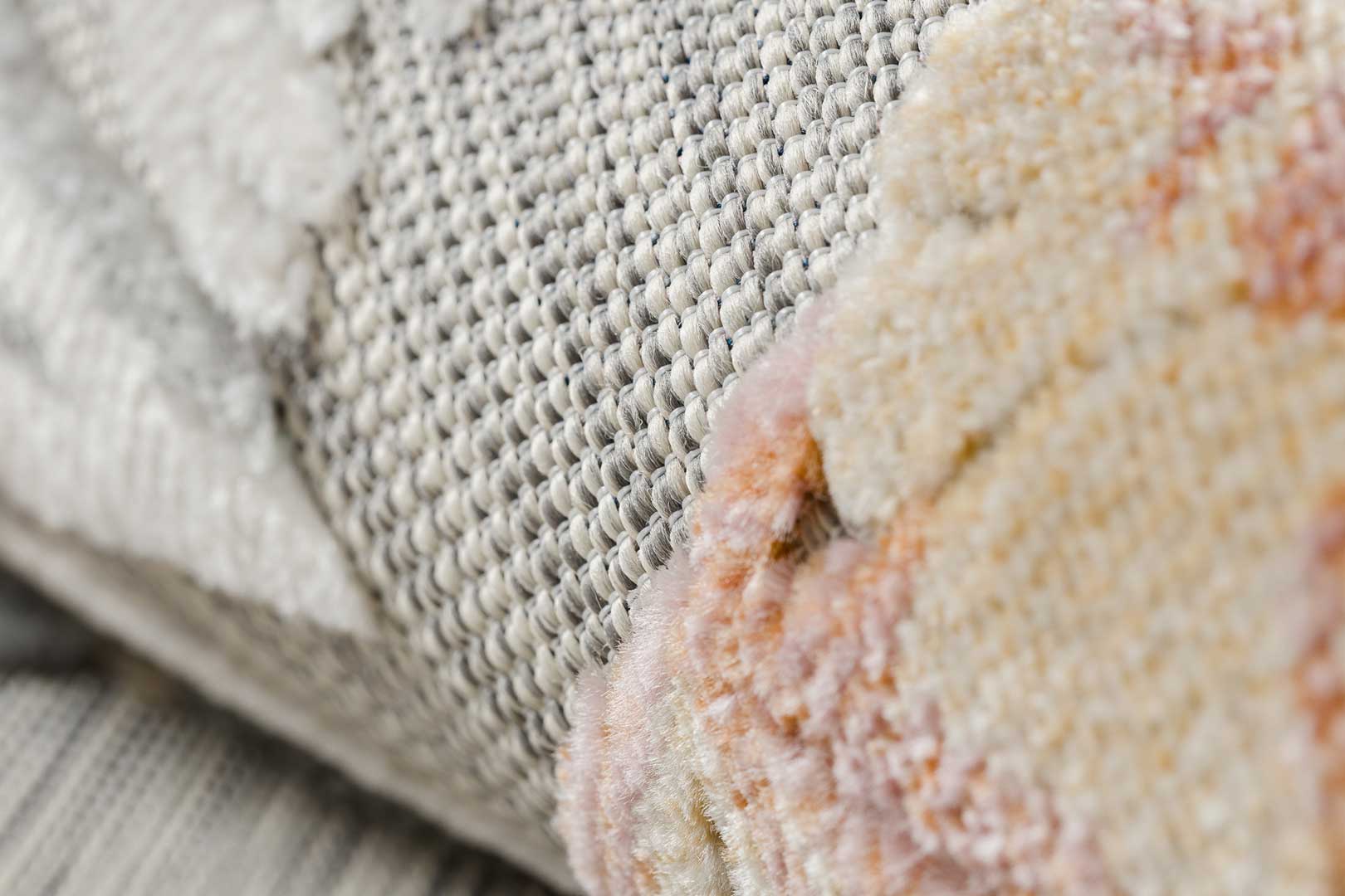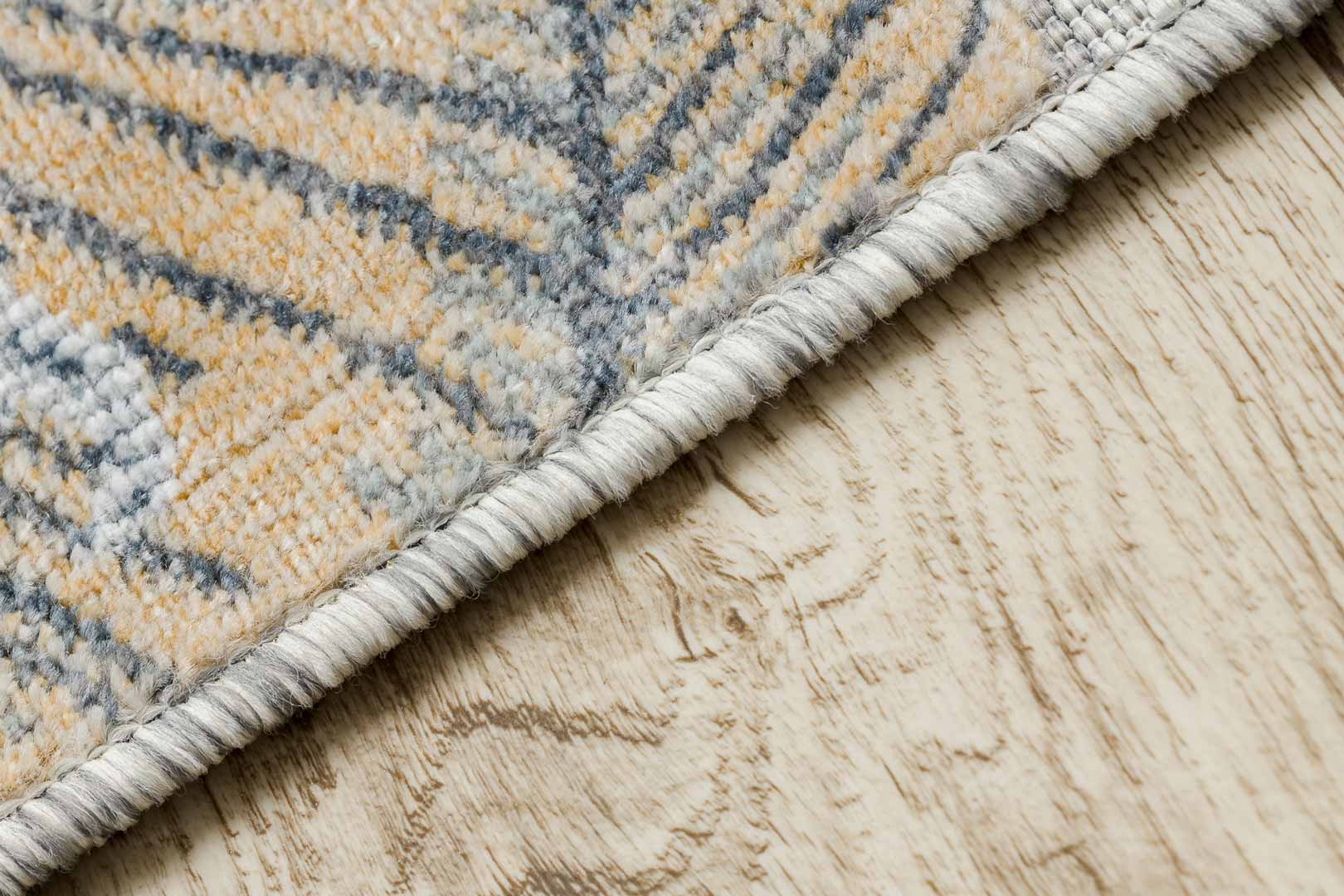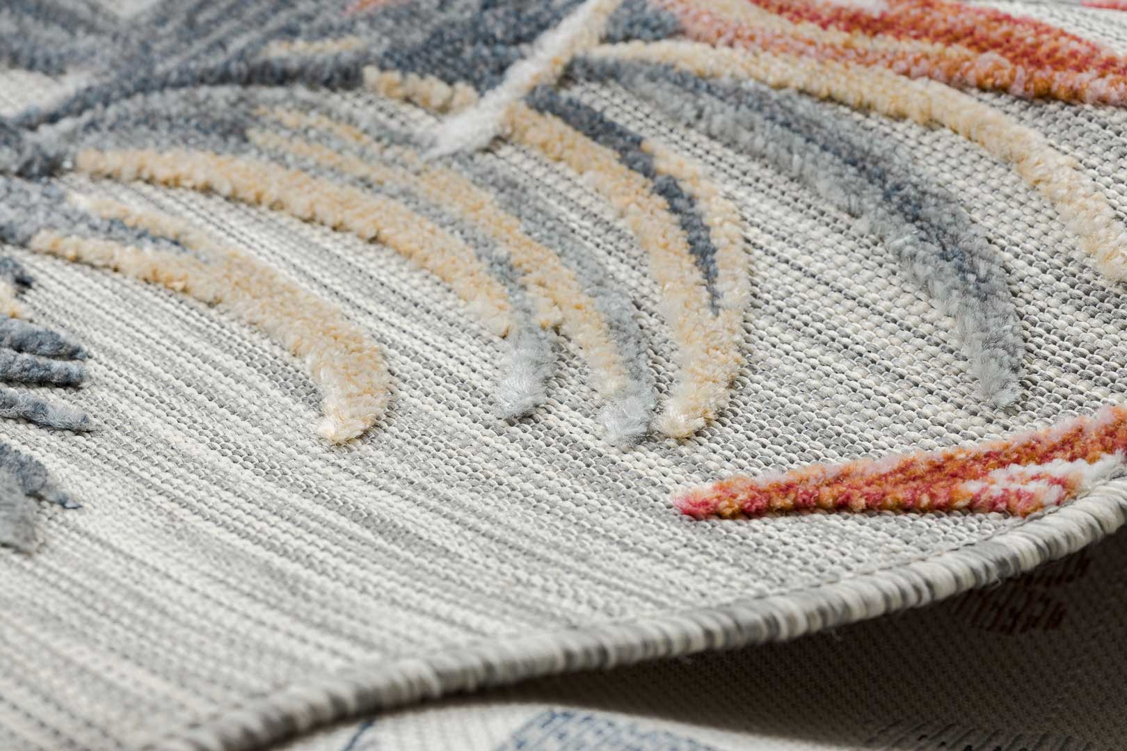 Tento koberec je umenie samo o sebe! Táto originálna kombinácia originálneho kvetinového vzoru a jemných farieb: sivej, tehlovej (červenej) a žltej, prinesie príjemnú atmosféru do minimalistickej spálne aj do rustikálnej obývačky. Pri výrobe sa používajú dve úrovne vlasu: plocho tkané vlákna a tradičný strihaný vlas. Bez námahy sa vysávajú, čo je veľmi nápomocné pri udržiavaní estetického vzhľadu a dlhodobej čistoty koberca. Koberec sa môže používať aj v exteriéri, pretože je odolný voči poveternostným podmienkam.