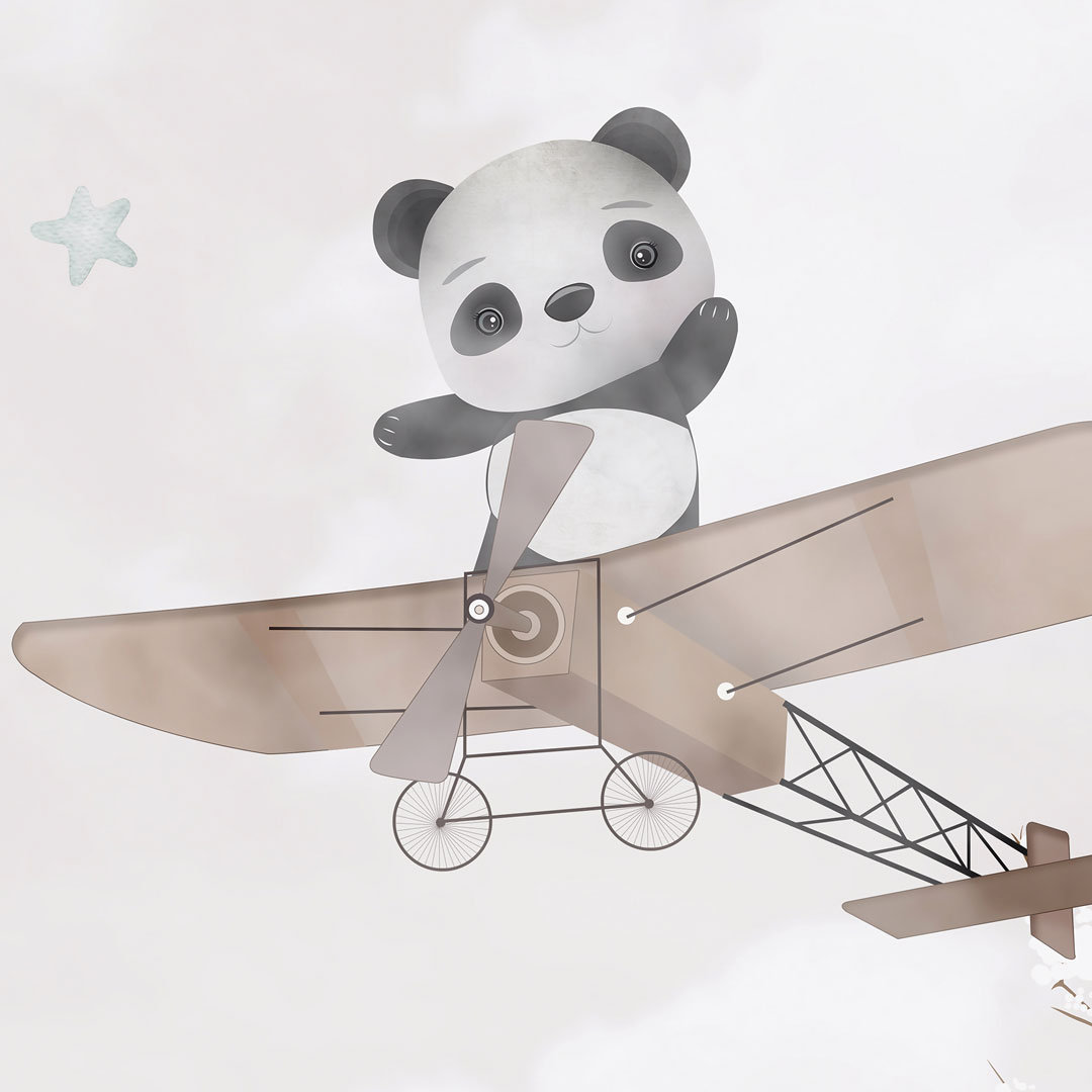 Tapeta na stenu pre deti, CESTOVANIE LETÚNOM, lietajúce zvieratá v lietadlách s vrtuľami