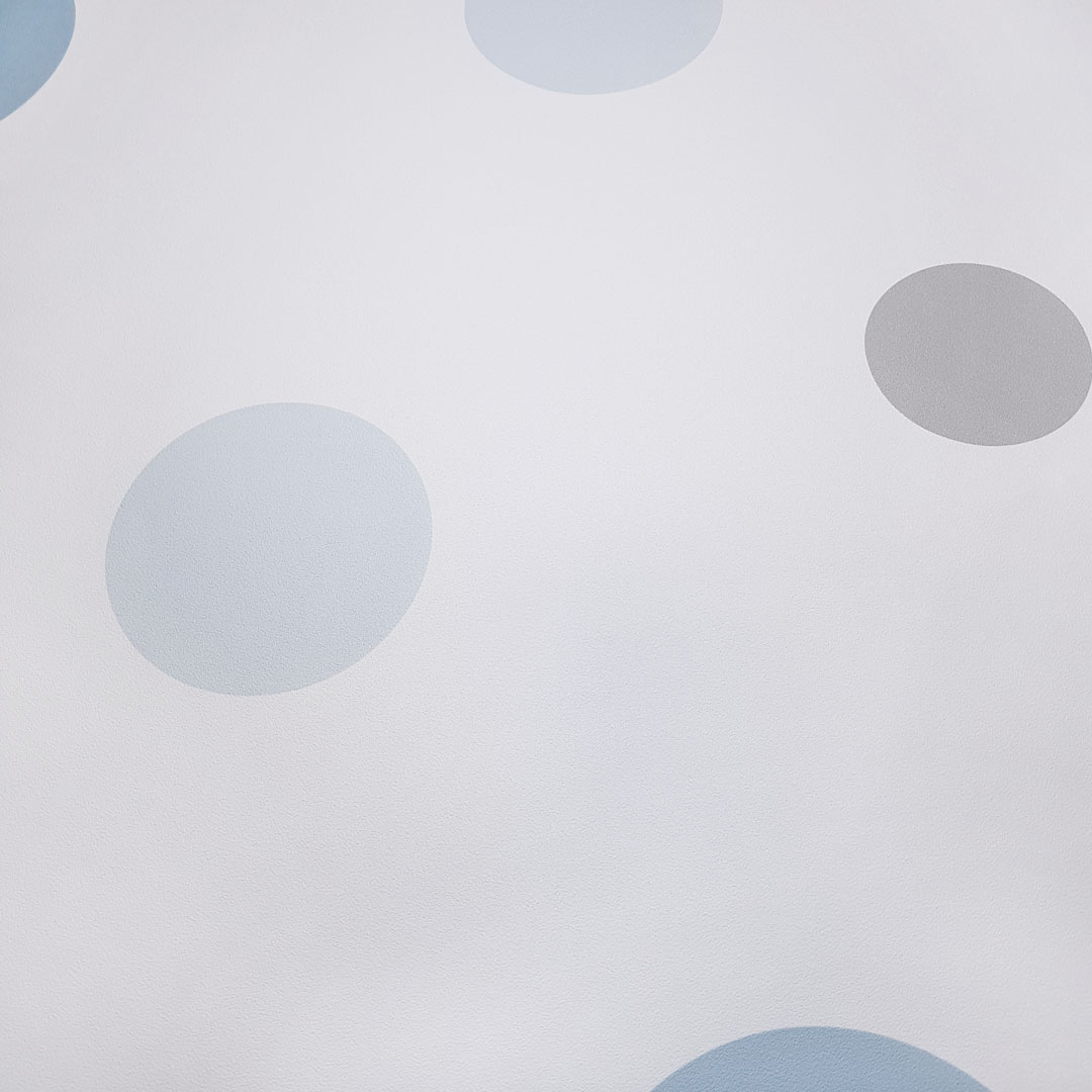 Tapeta s modrými a sivými bublinami a bodkami v modernom štýle, do obývacej izby