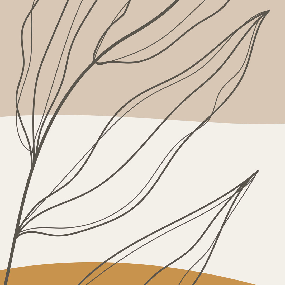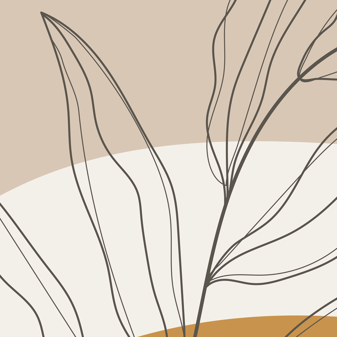 Abstraktná tapeta, vetva v hnedej a bodky na krémovom pozadí, boho štýl
