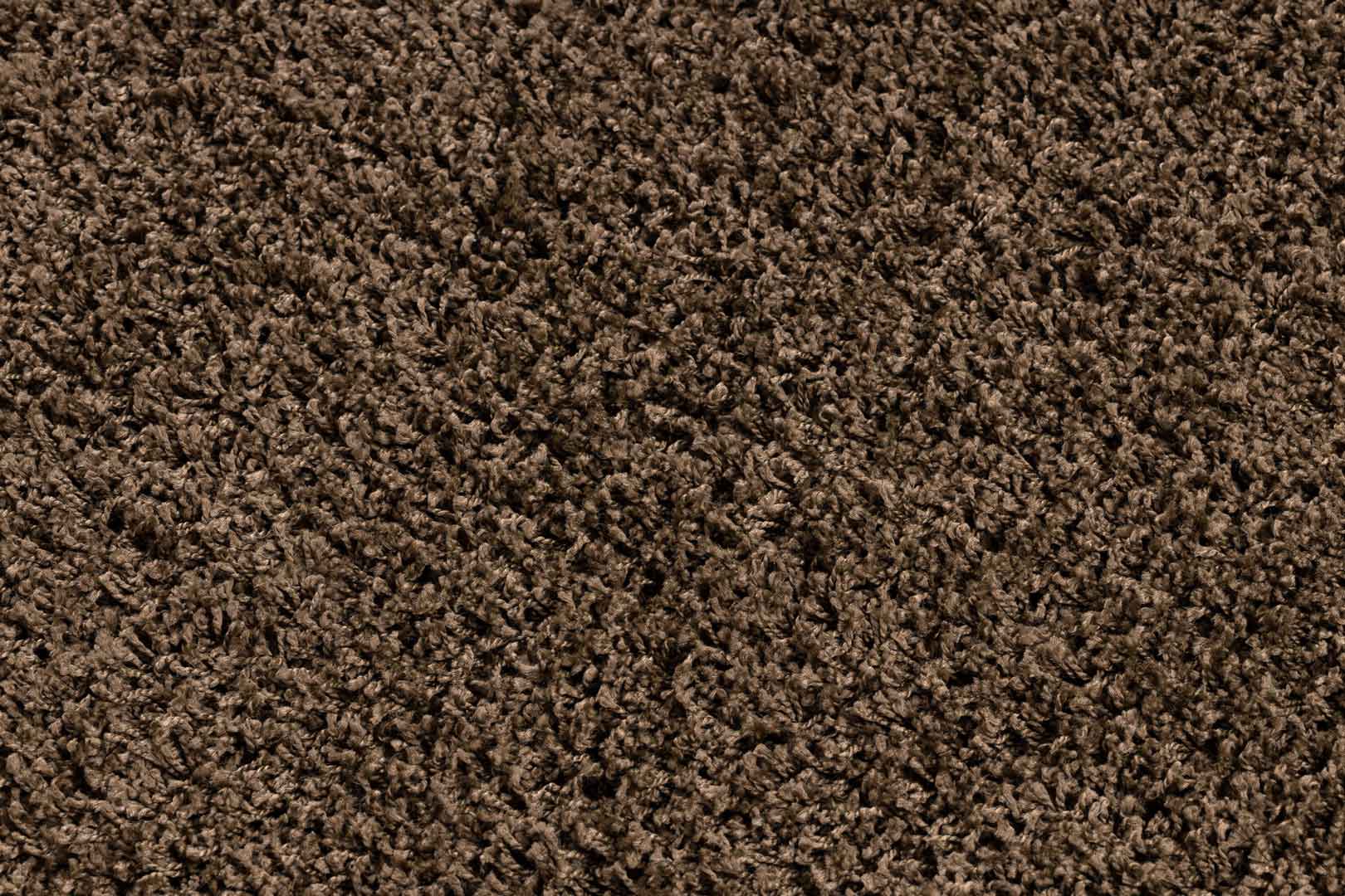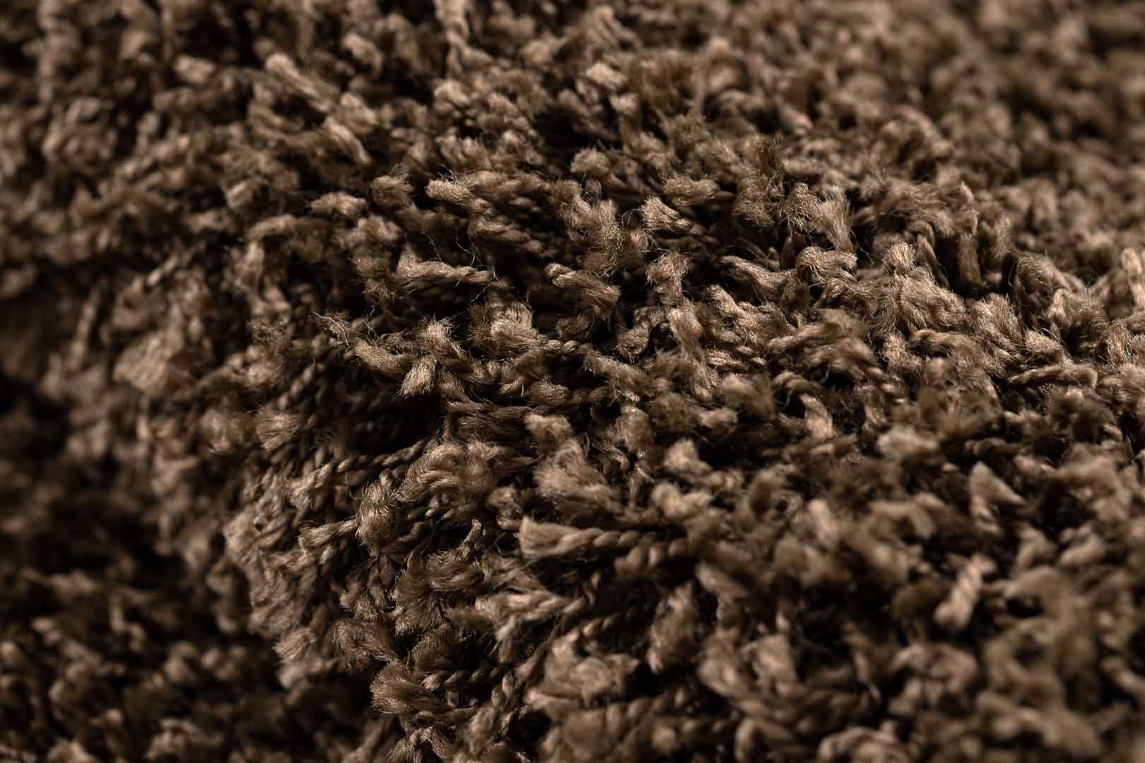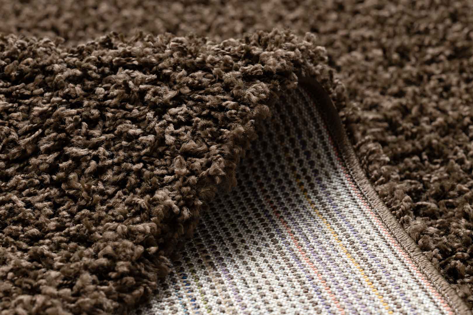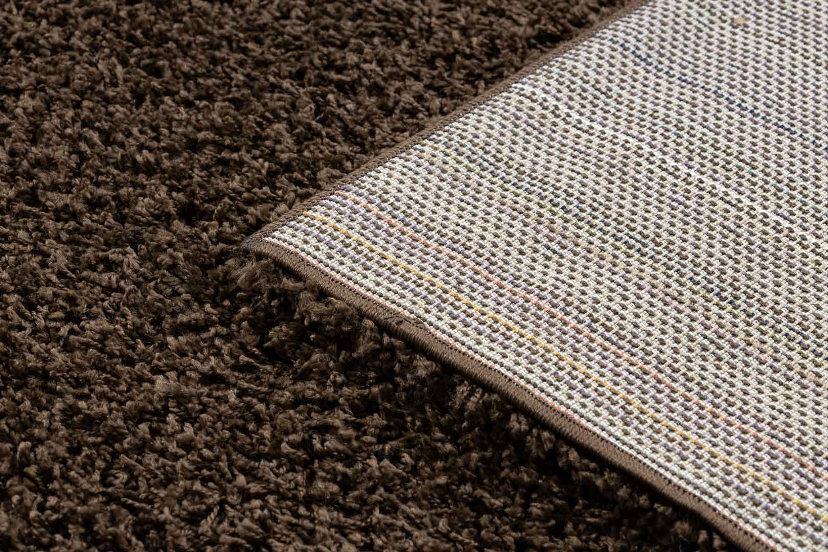Tmavý moderný mäkký koberec Shaggy do spálne v hnedej farbe