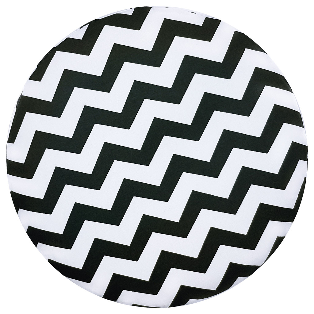 Trendový moderný puf, taburetka v škandinávskom štýle s čierno-bielymi cikcakmi.