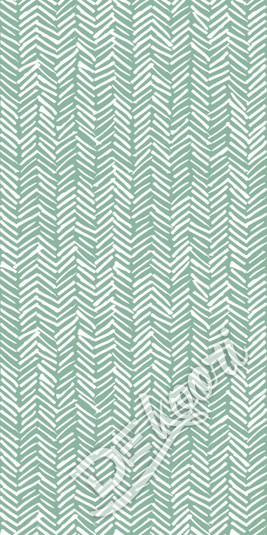 Zelená tapeta na stenu s bielymi čiarami, vzor rybej kosti, štýl boho
