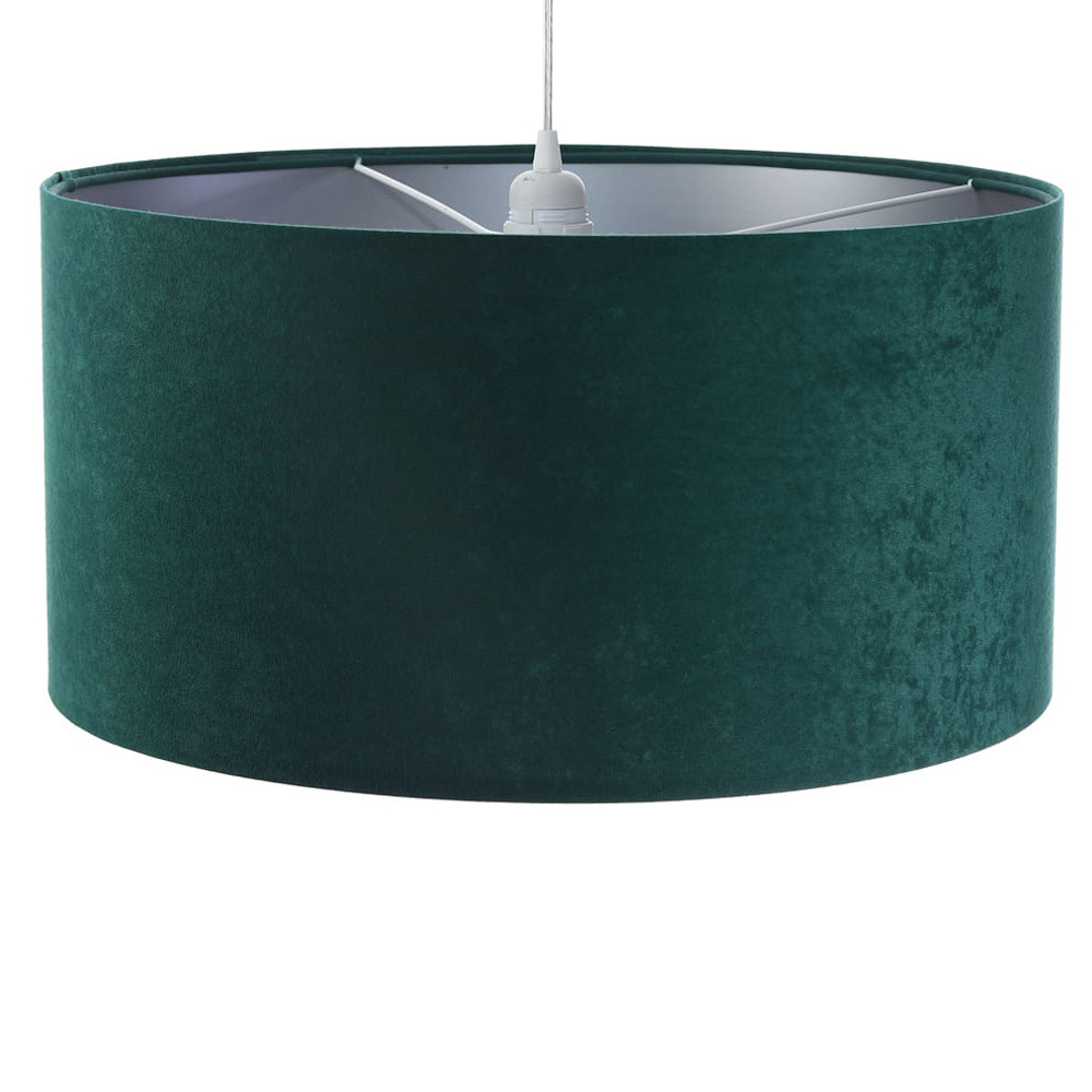 Zeleno-strieborná závesná lampa OLYMPIA s velúrovým tienidlom, abažúrom v tvare valca