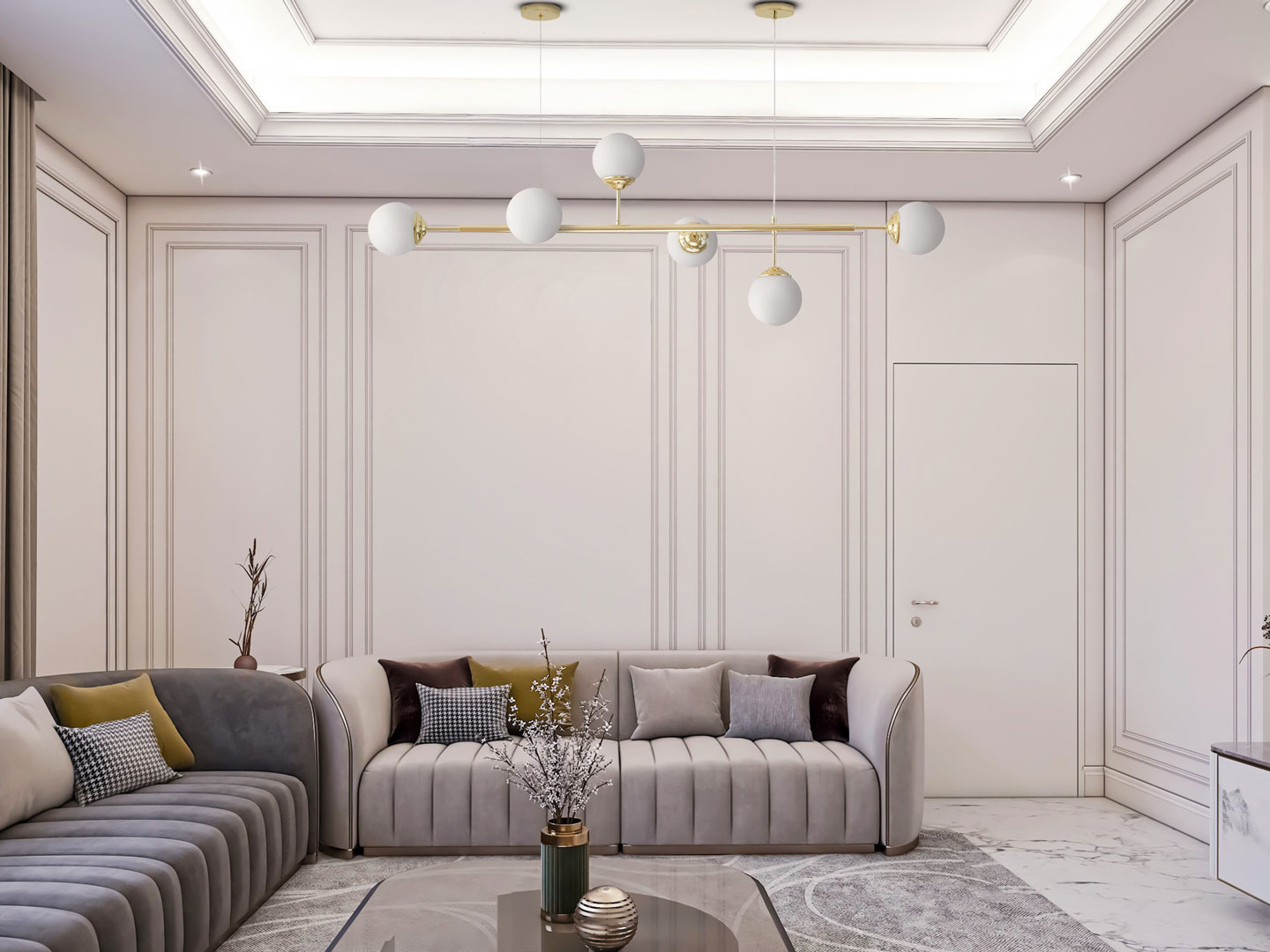Moderná biela bodkovaná tapeta so sivými, čiernymi a žltými bublinami a bodkami Štýl